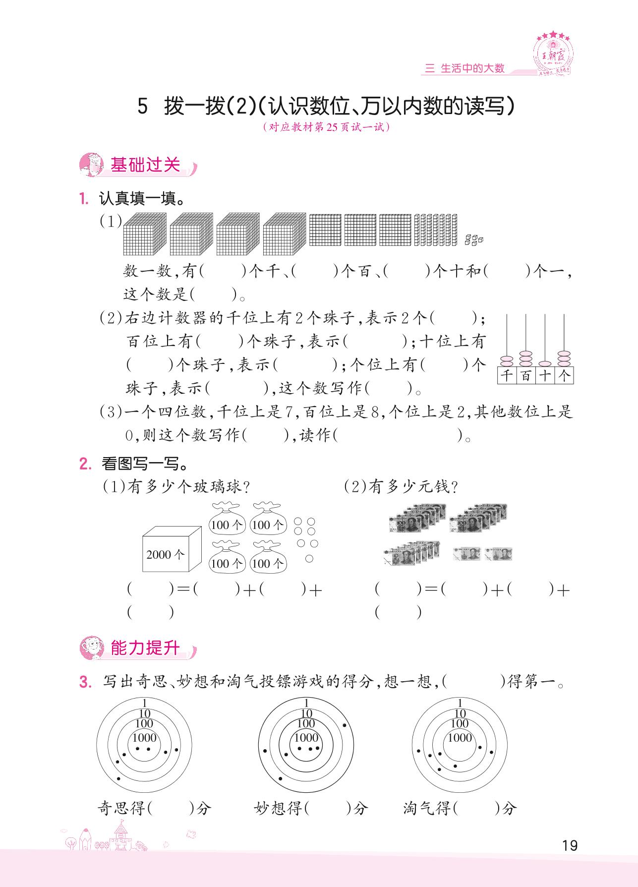 2022下册二年级数学北师版 三 生活中的大数——5 拨一拨(2)
