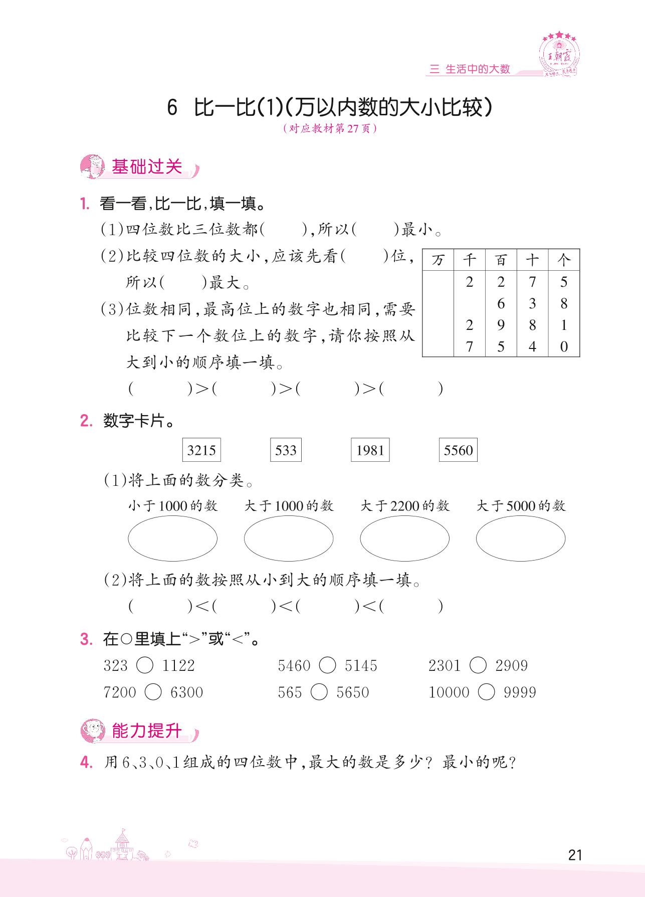 2022下册二年级数学北师版 三 生活中的大数——6 比一比(1)