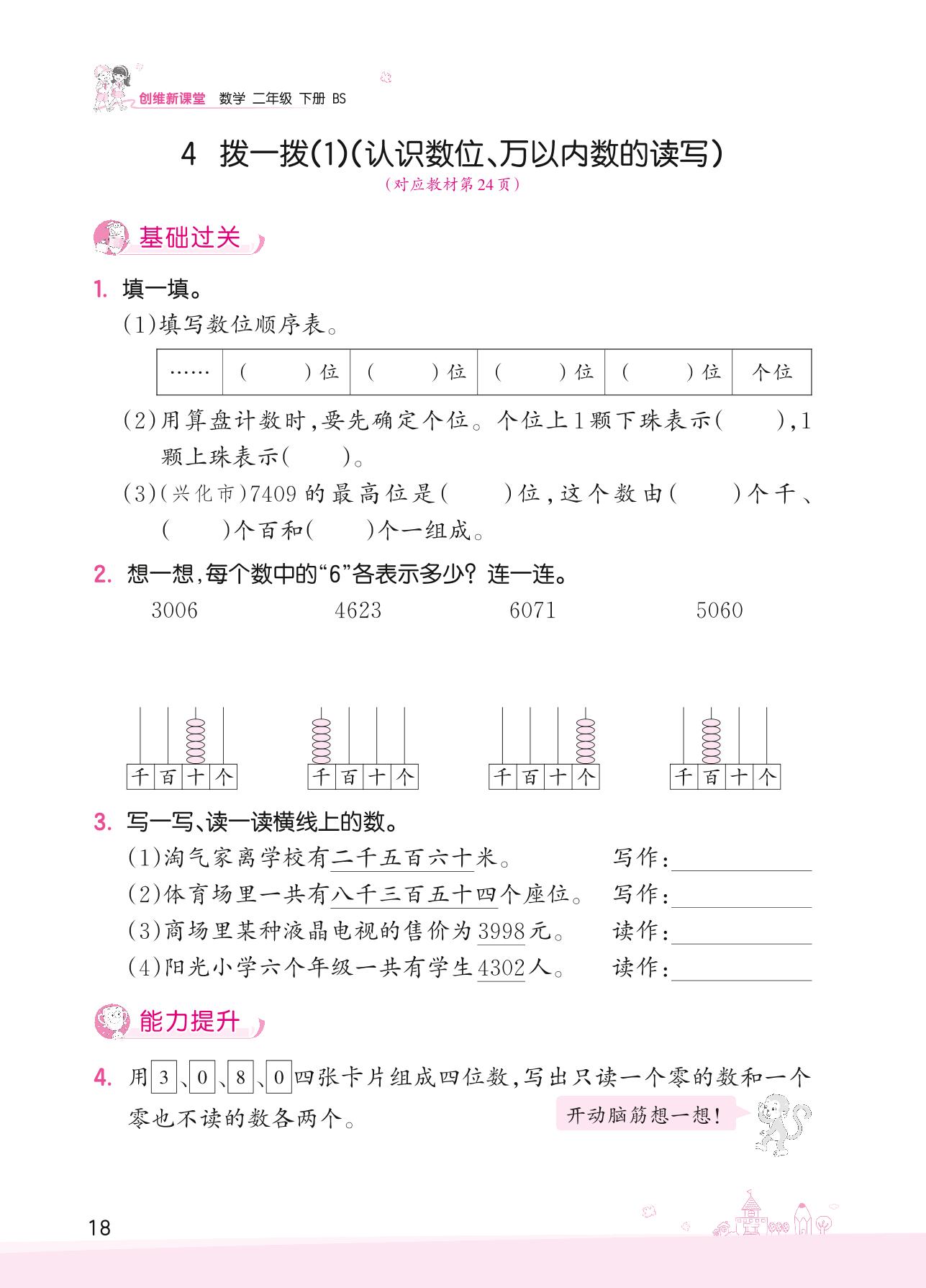 2022下册二年级数学北师版 三 生活中的大数——4 拨一拨(1)