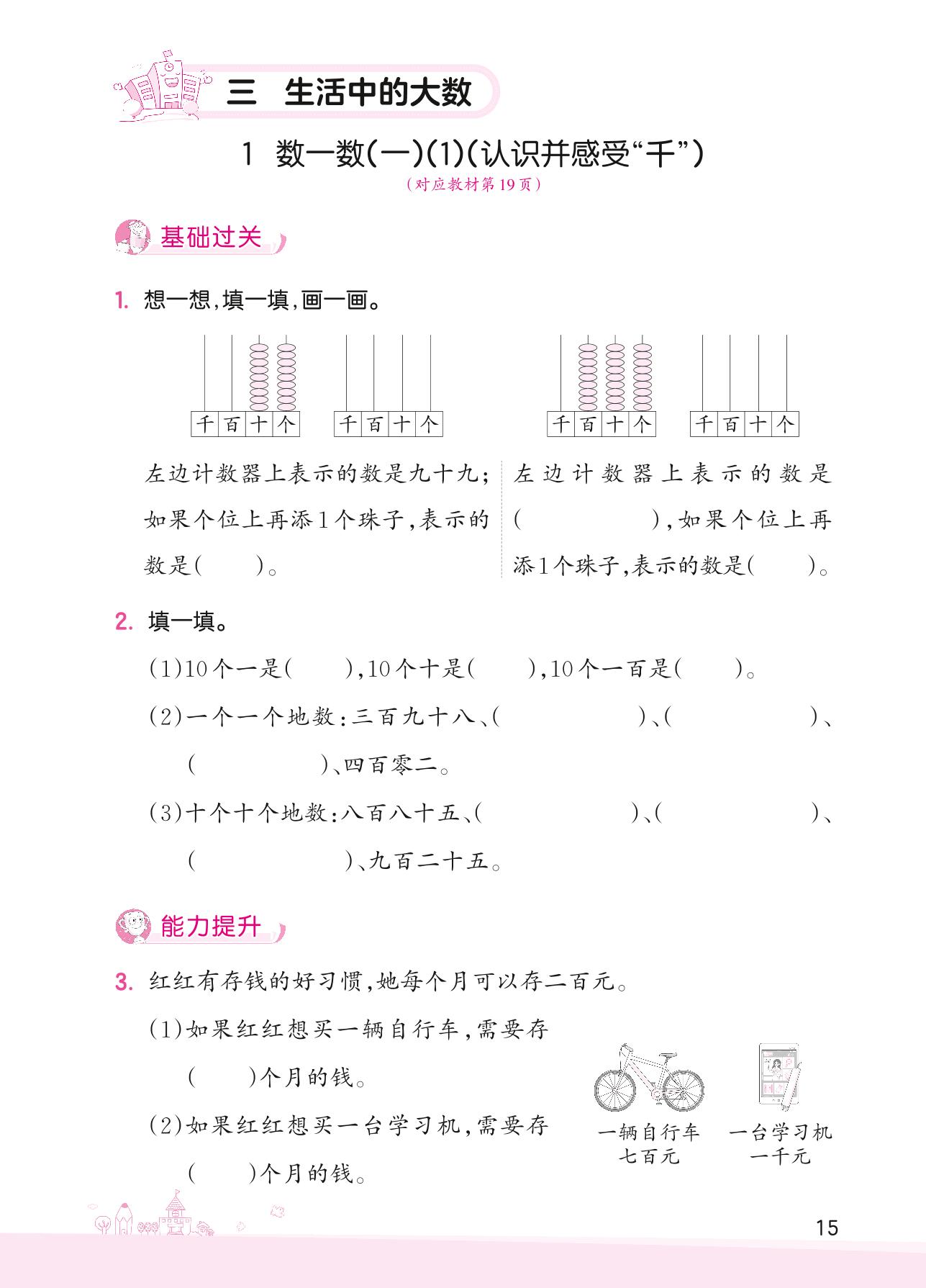 2022下册二年级数学北师版 三 生活中的大数——1 数一数(一)(1)