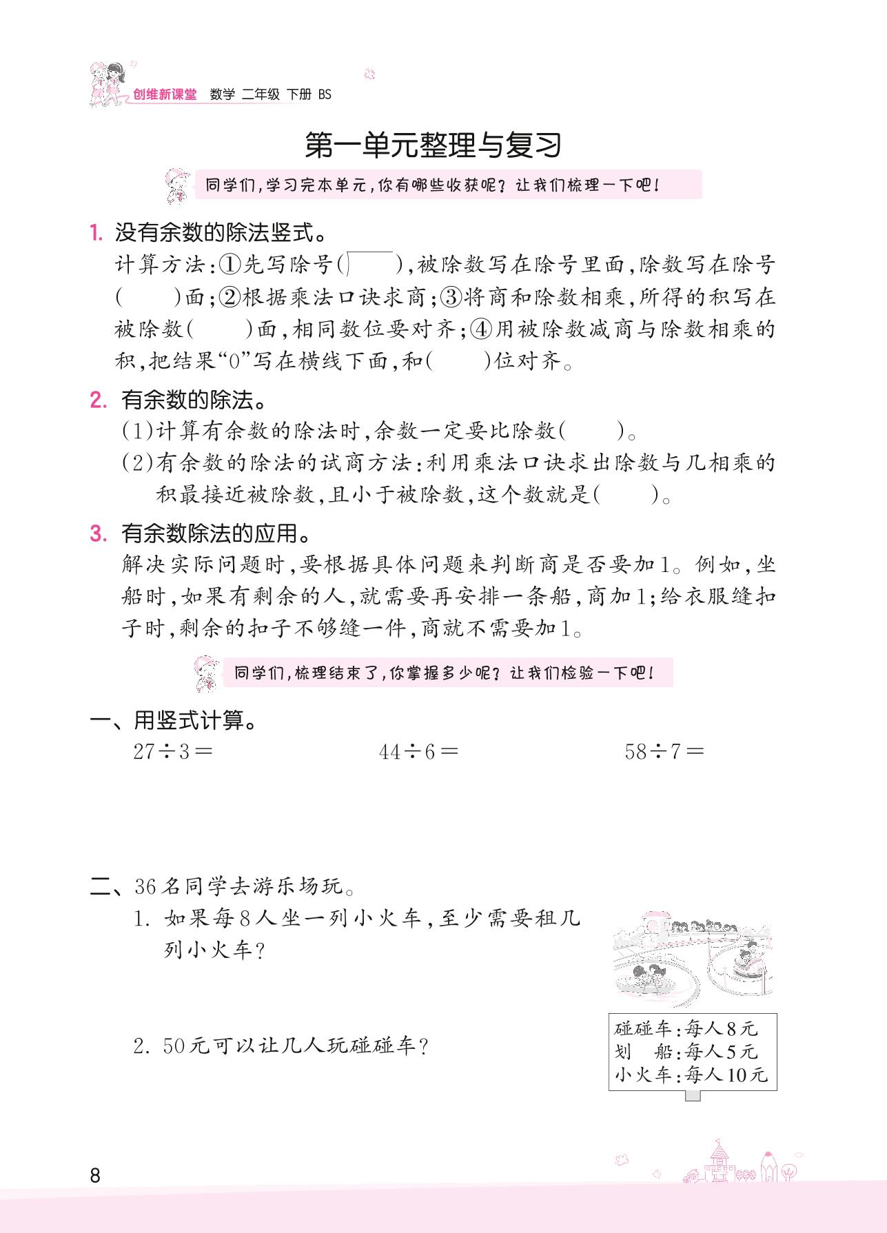 2022下册二年级数学北师版 一 除法——第一单元整理与复习