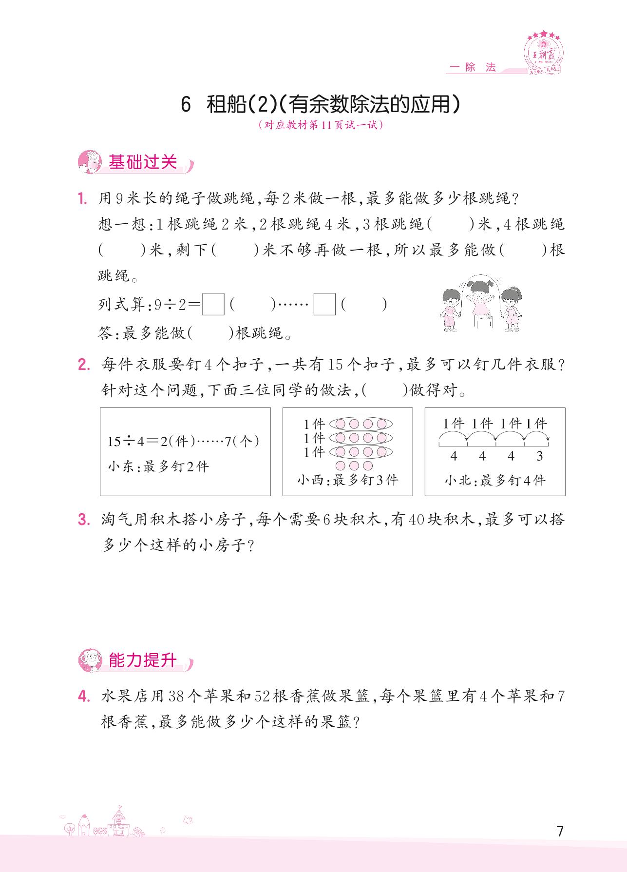 2022下册二年级数学北师版 一 除法——6 租船(2)