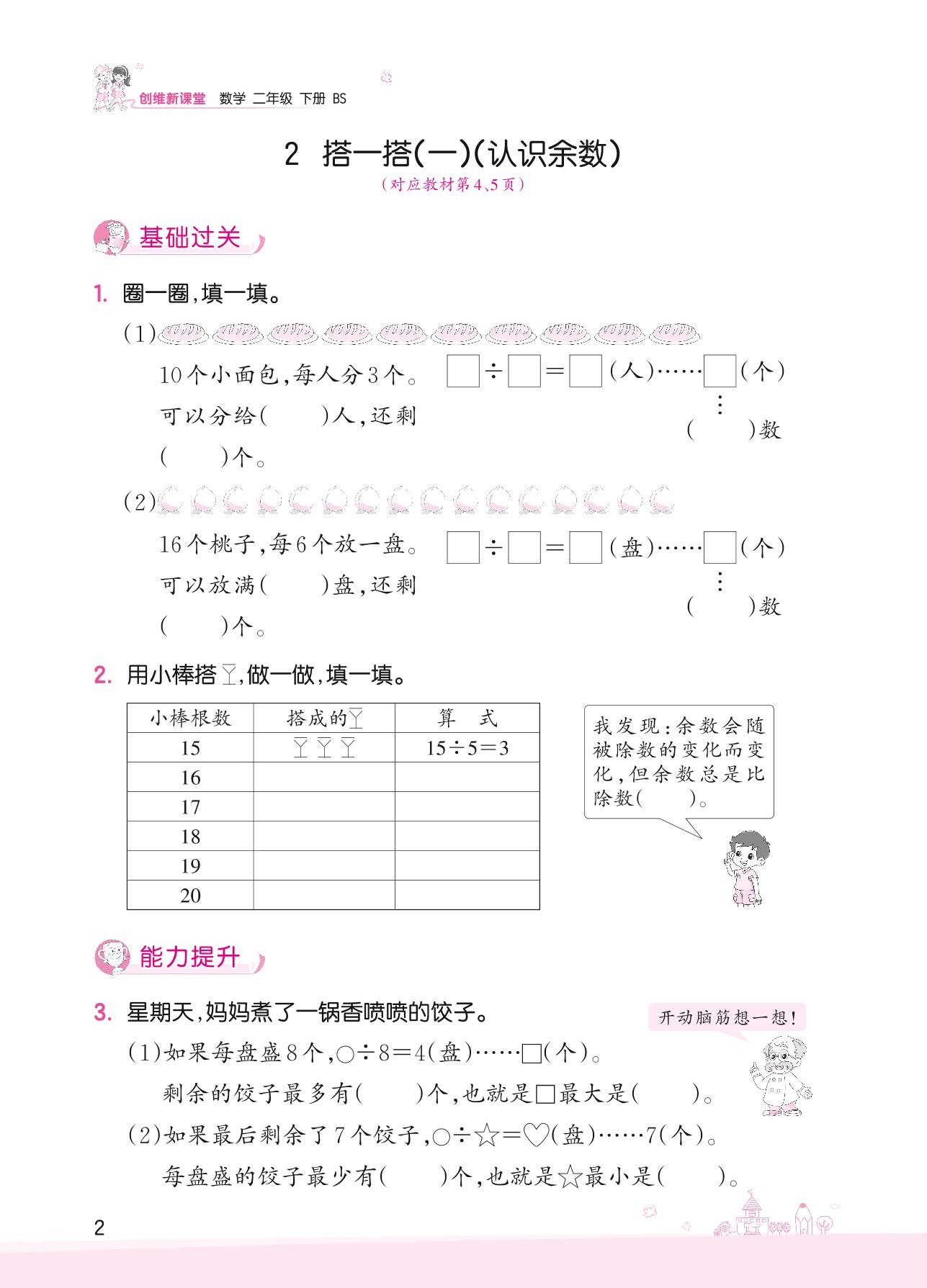 2022下册二年级数学北师版 一 除法——2 搭一搭(一)