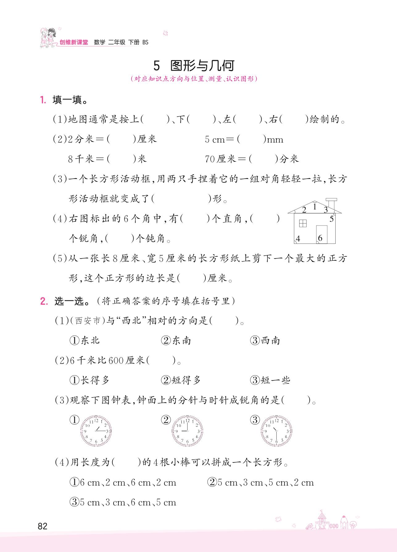 2022下册二年级数学北师版 总复习——5 图形与几何