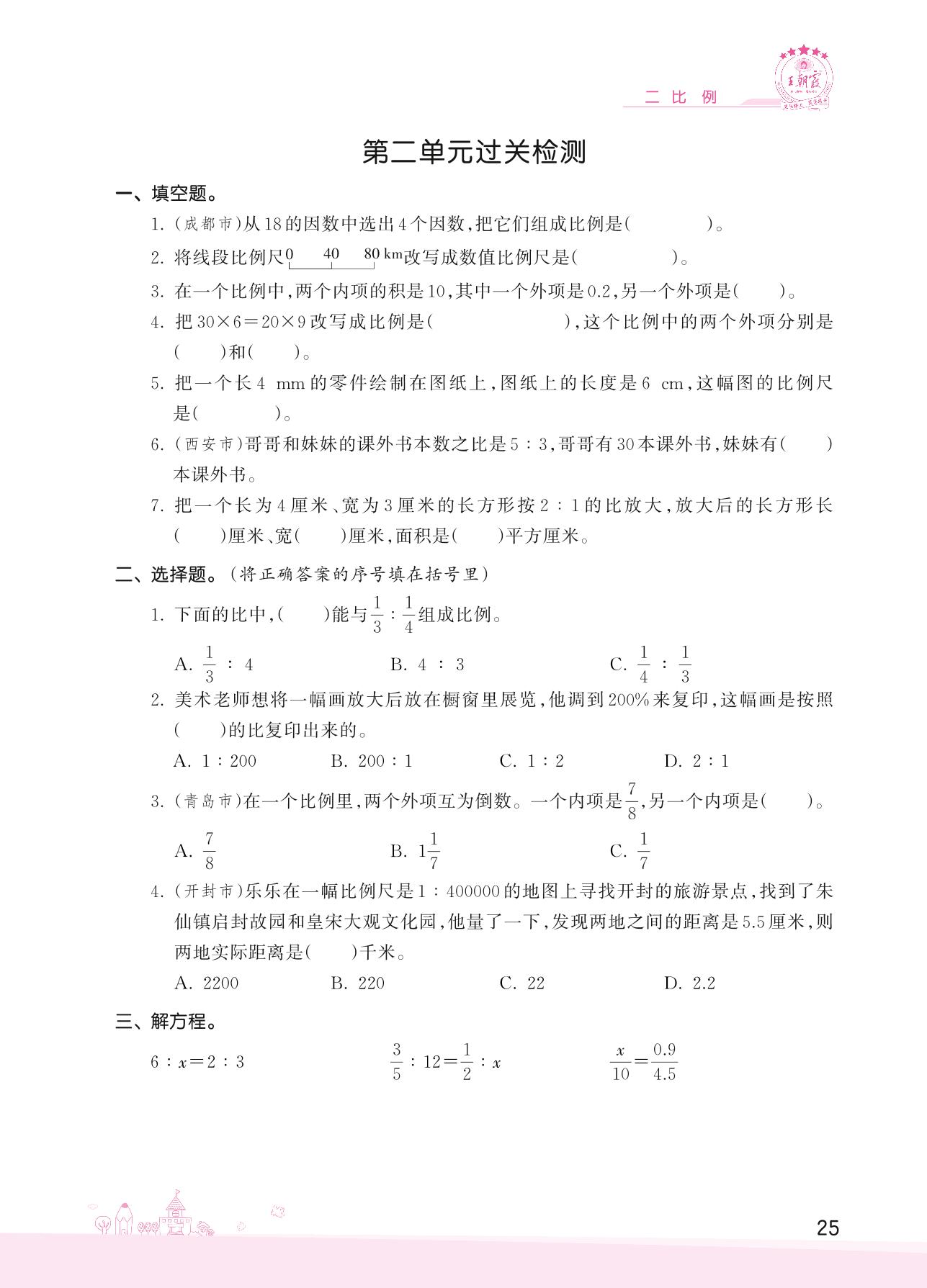 2022下册六年级数学北师版 二 比例——第二单元过关检测
