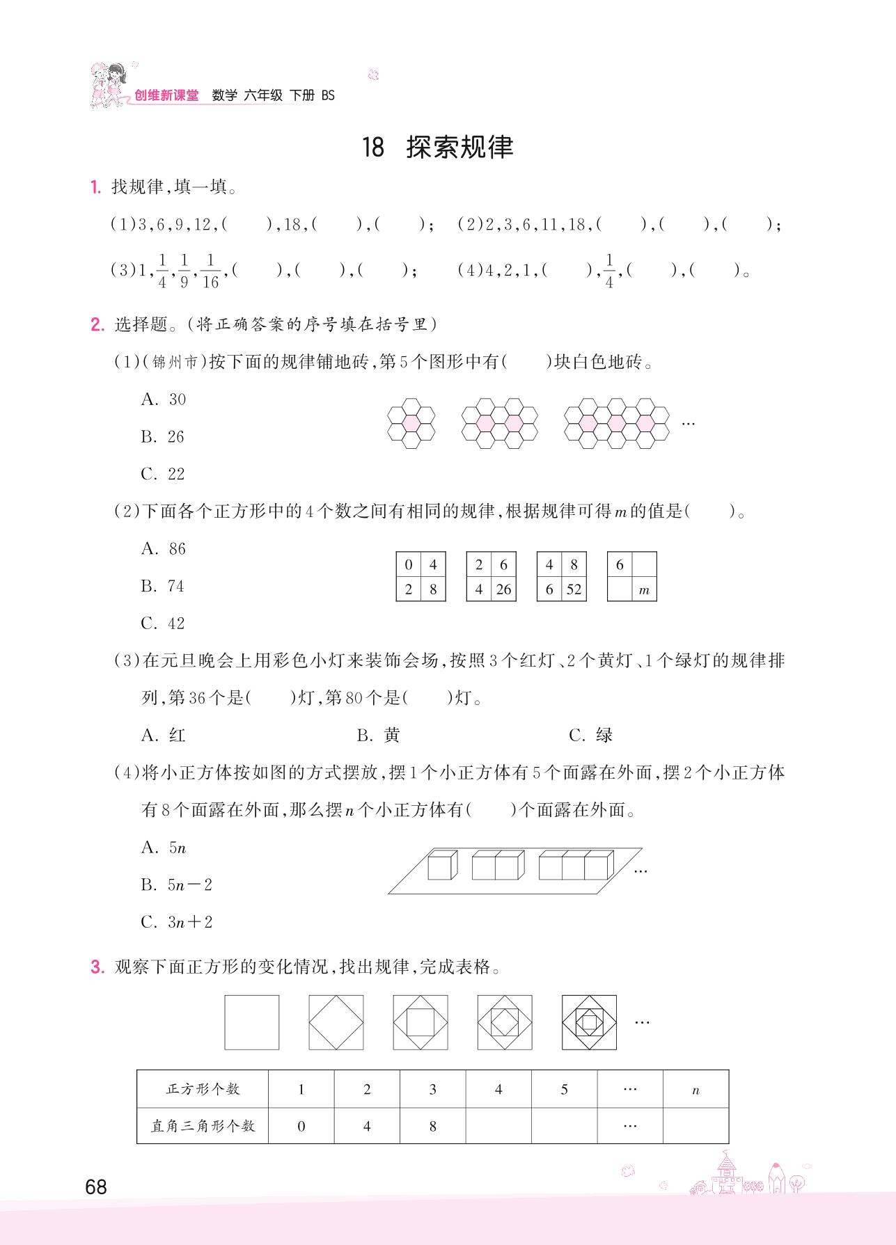 2022下册六年级数学北师版 总复习 数与代数——18 探索规律