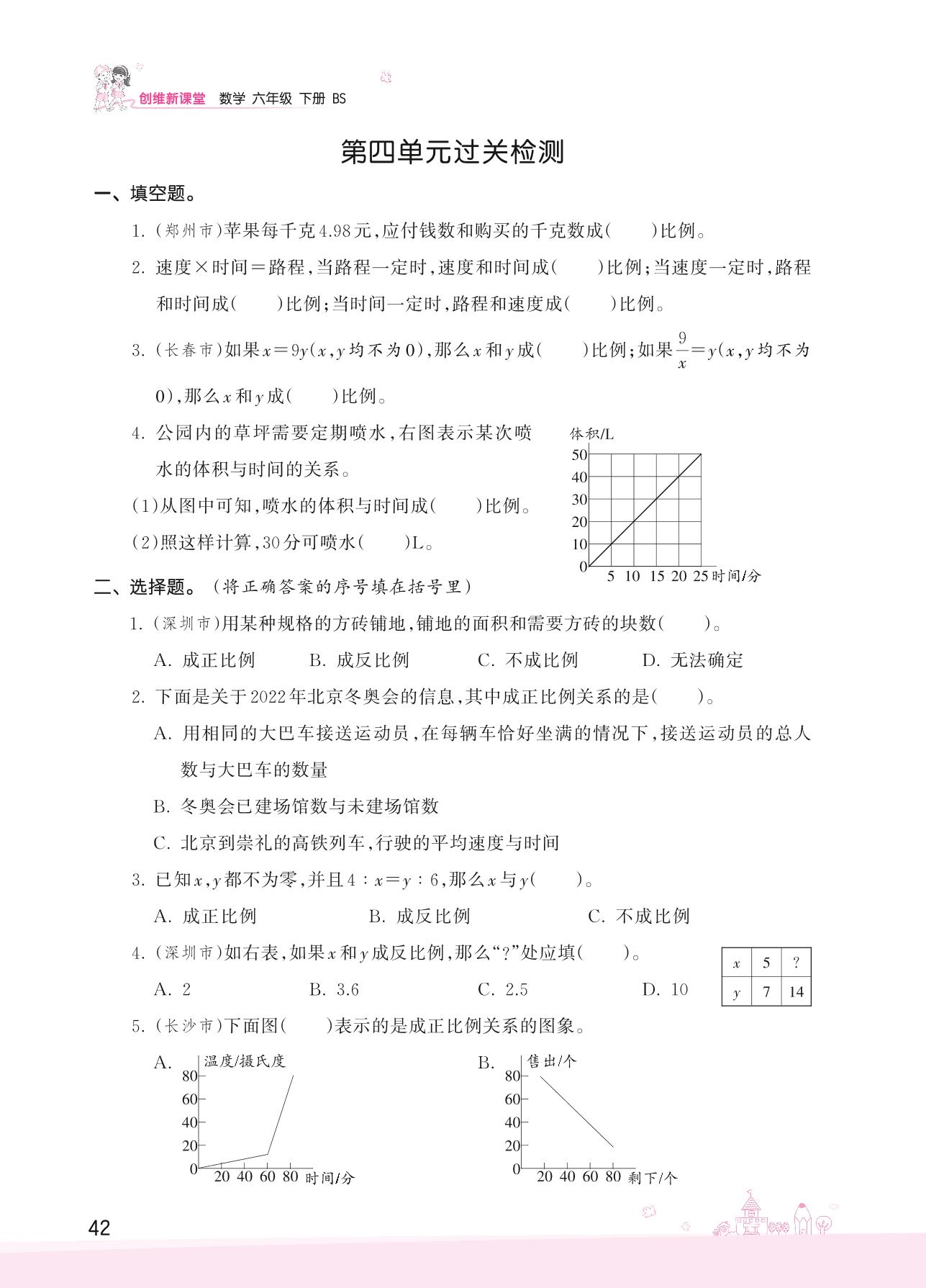 2022下册六年级数学北师版 四 正比例与反比例——第四单元过关检测