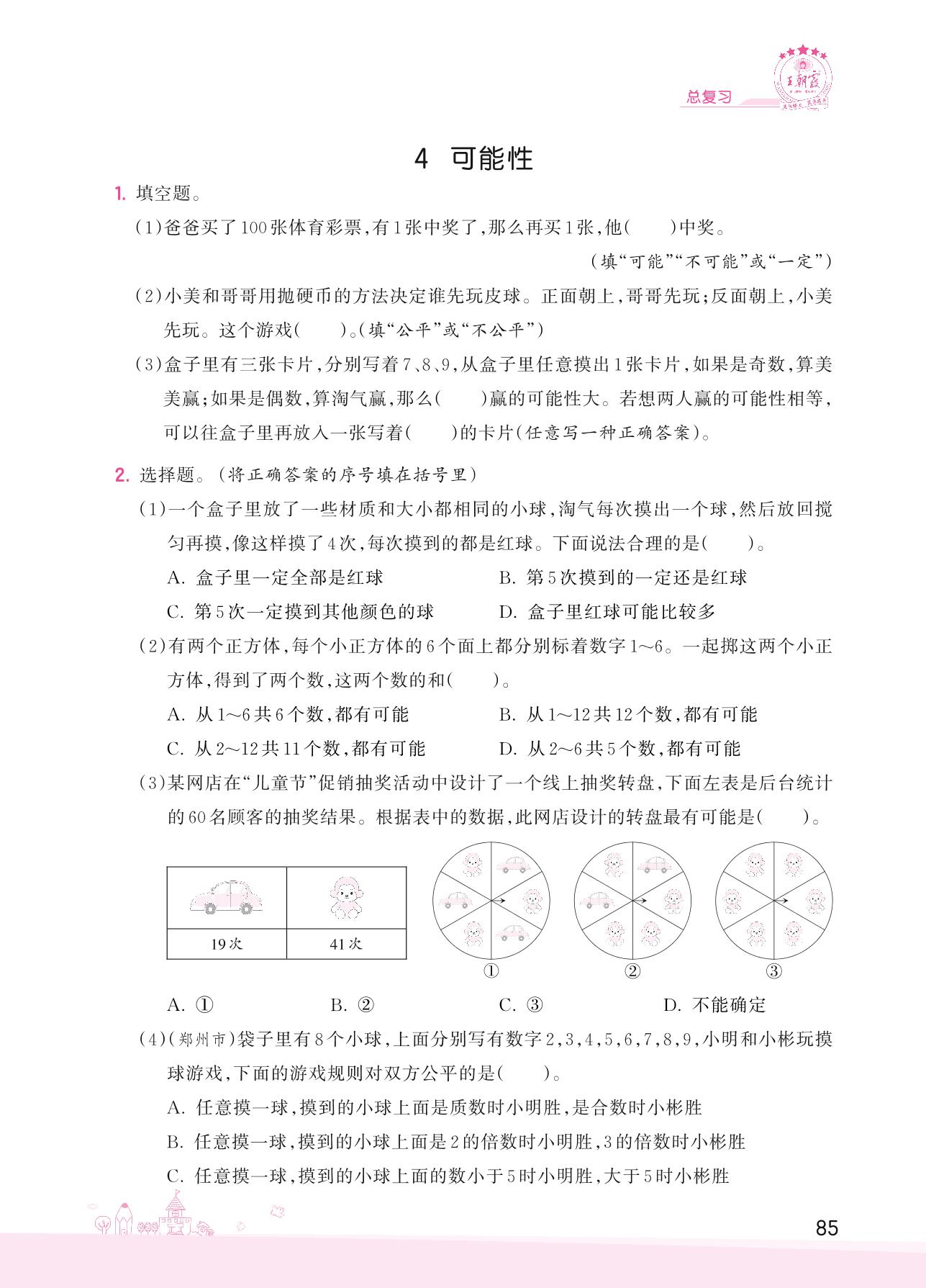 2022下册六年级数学北师版 总复习 统计与概率——4 可能性