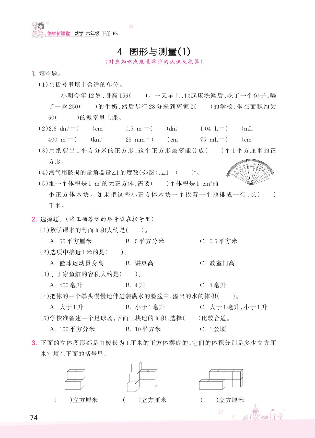 2022下册六年级数学北师版 总复习 图形与几何——4 图形与测量(1)