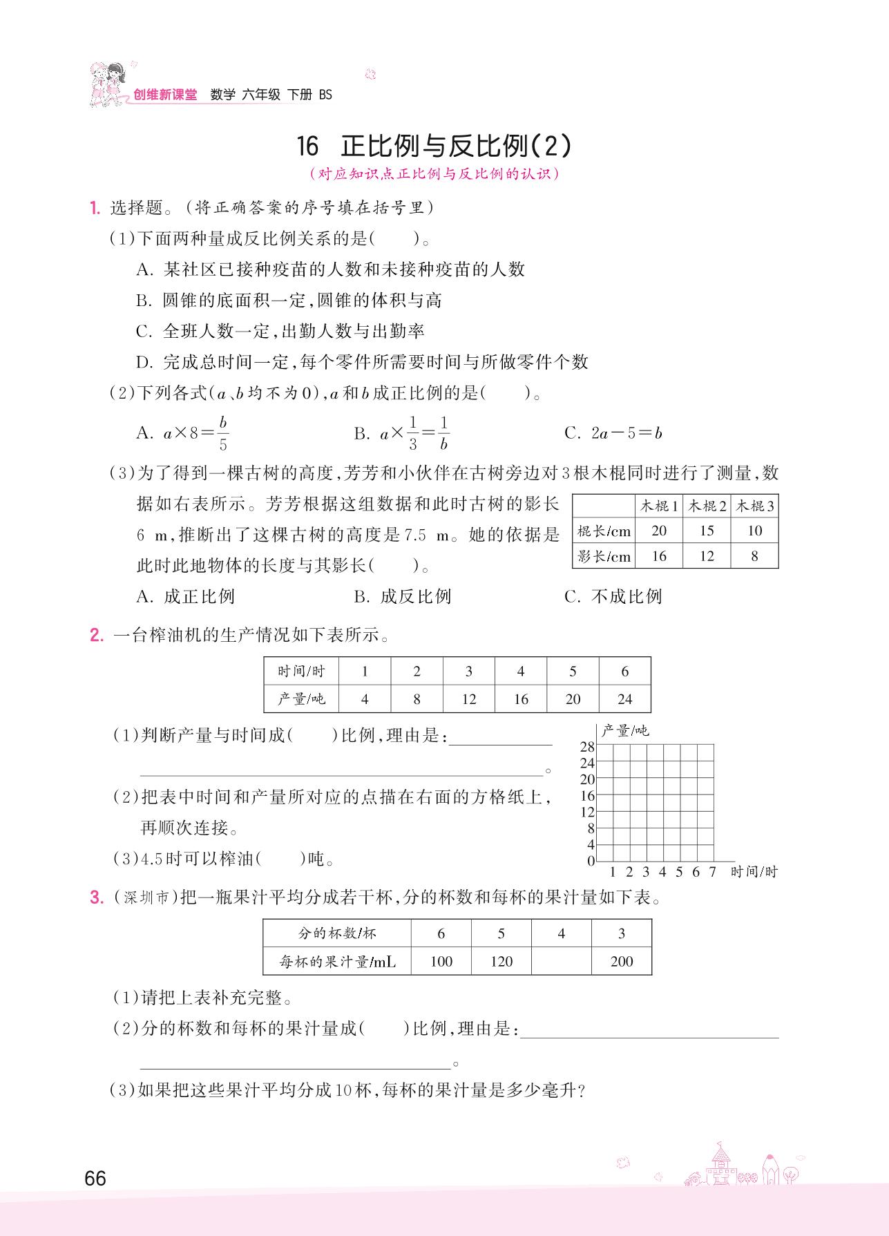 2022下册六年级数学北师版 总复习 数与代数——16 正比例与反比例(2)