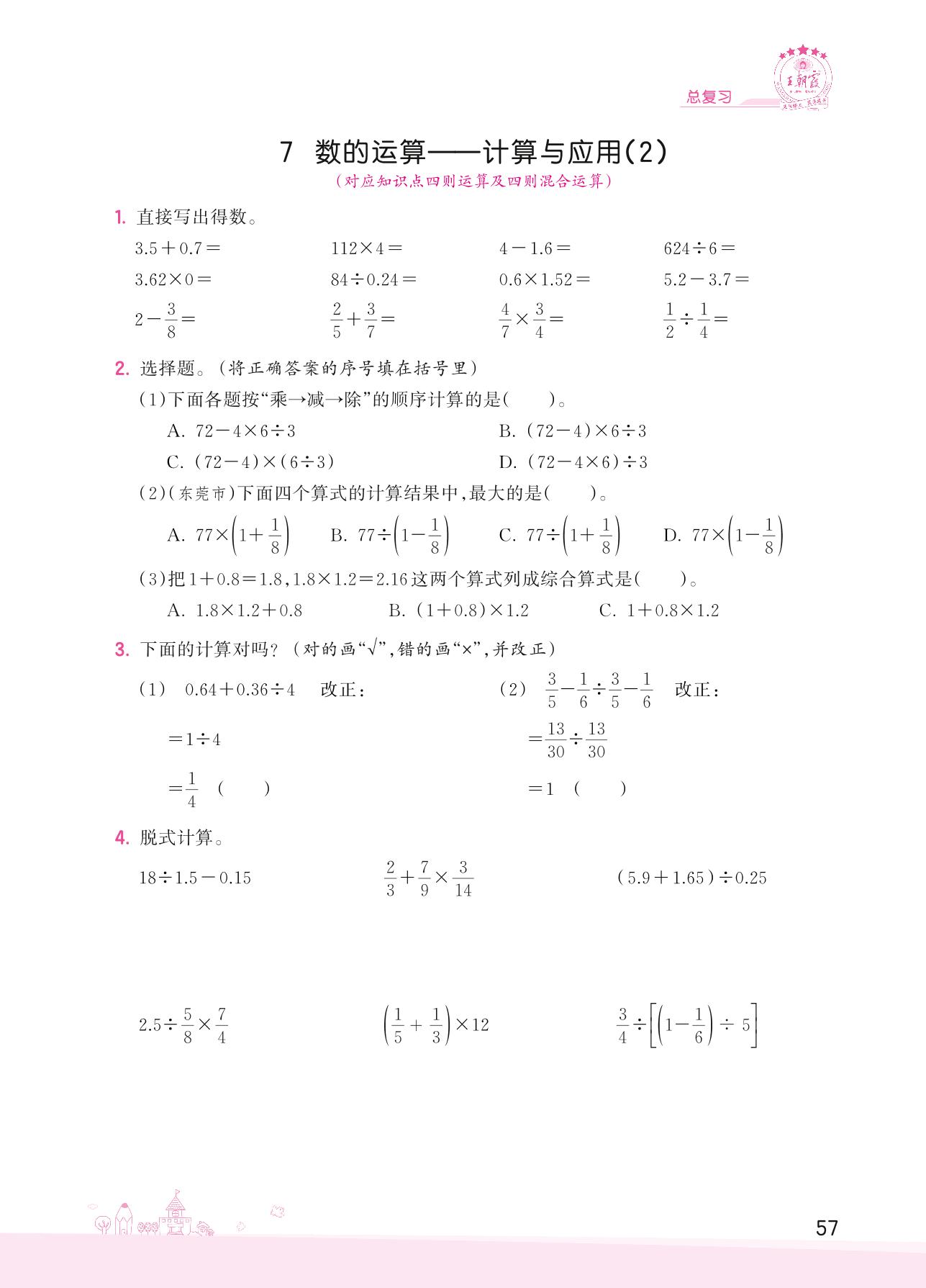 2022下册六年级数学北师版 总复习 数与代数——7 数的运算 计算与应用(2)
