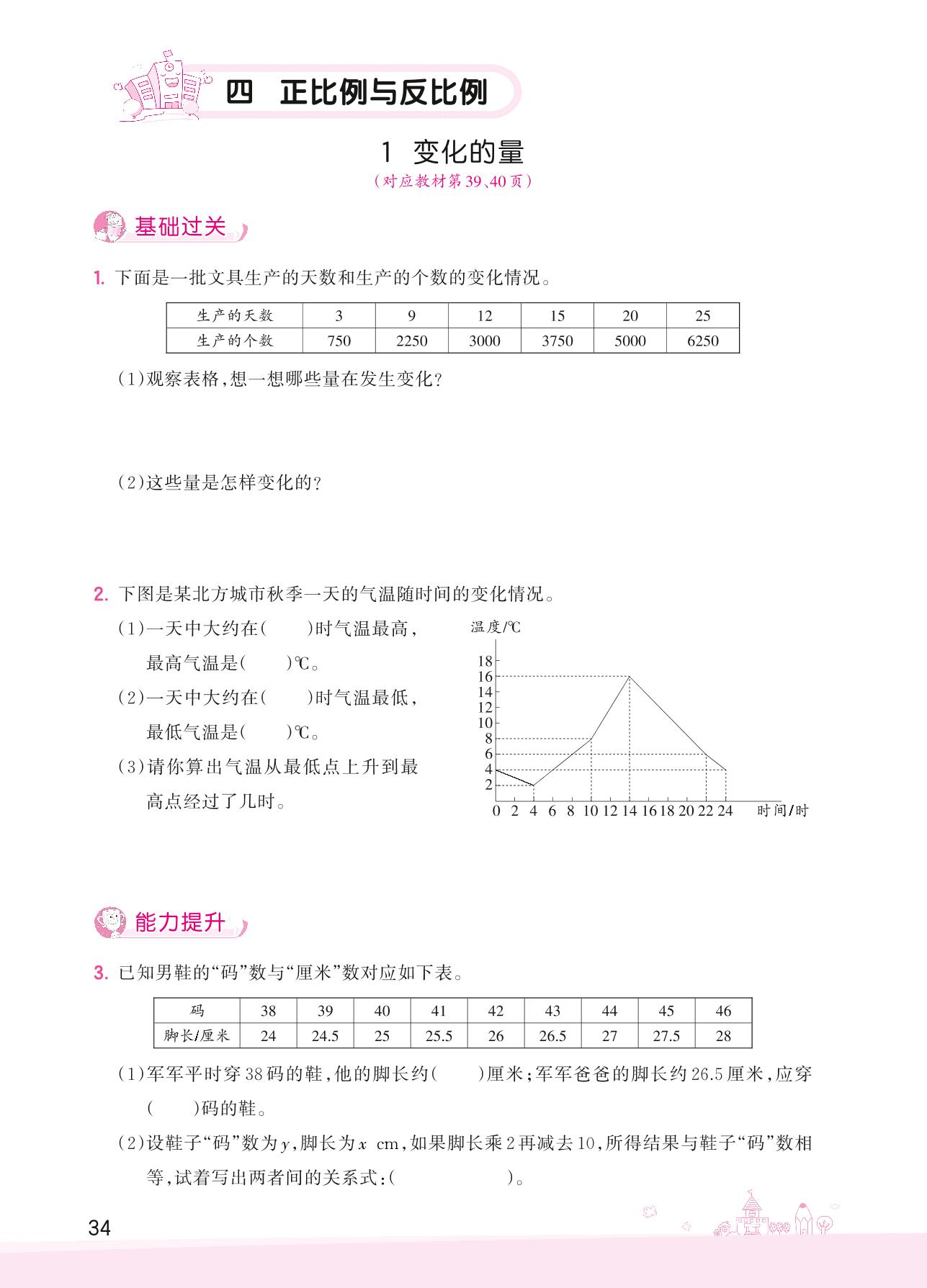 2022下册六年级数学北师版 四 正比例与反比例——1 变化的量
