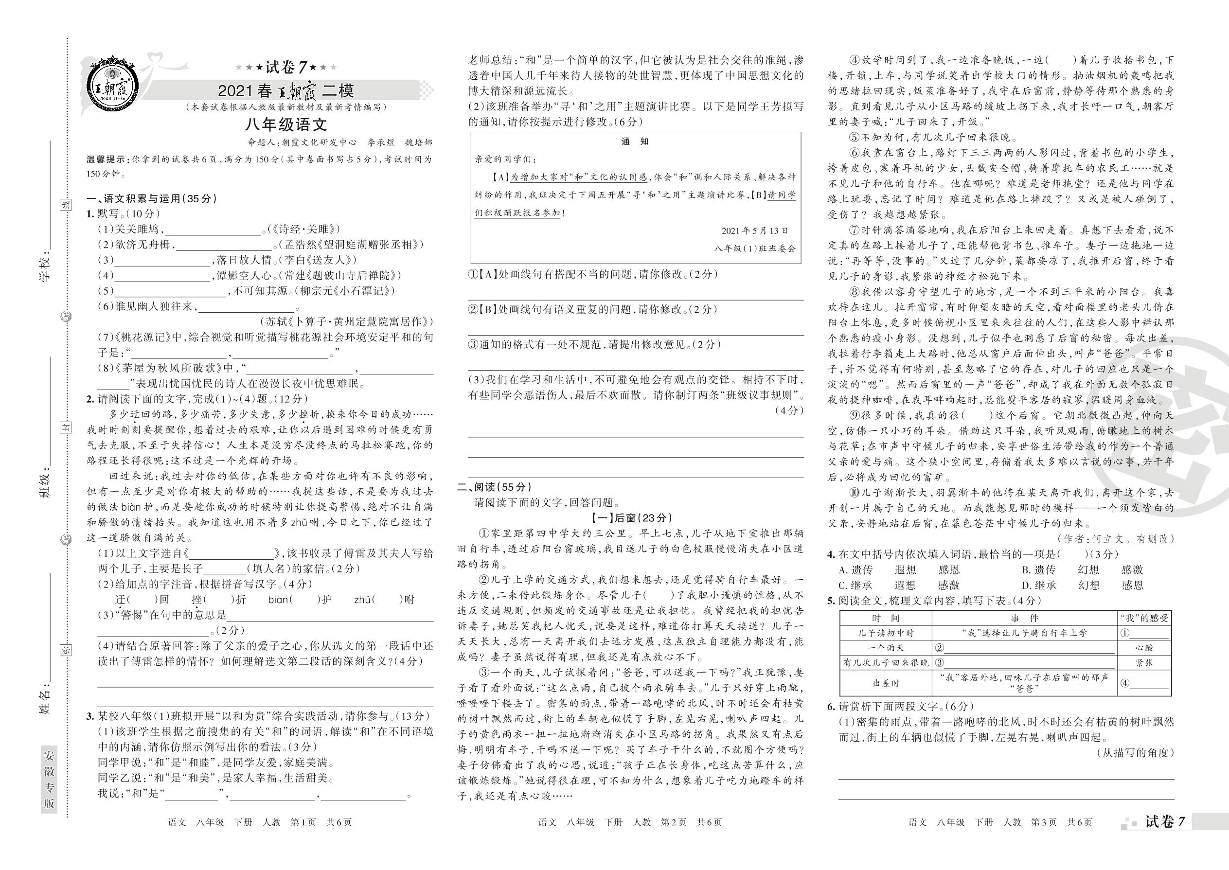 王朝霞期末模拟卷八年级下册语文(人教版)_R210801235257【7】
