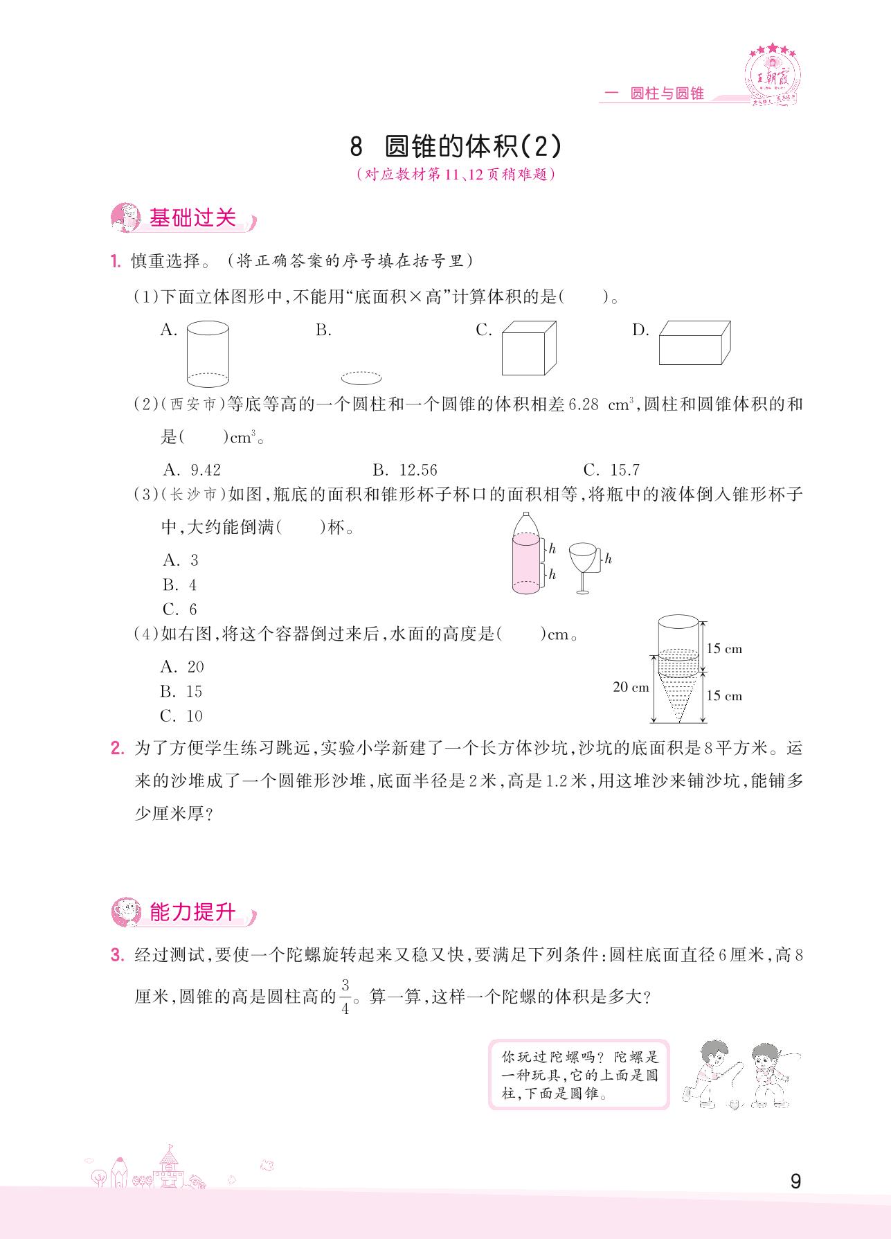 2022下册六年级数学北师版 一 圆柱与圆锥——8 圆锥的体积(2)