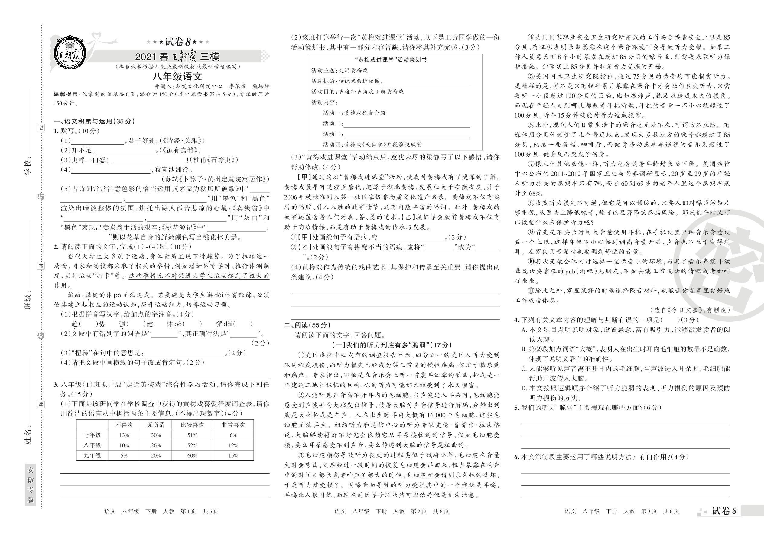 王朝霞期末模拟卷八年级下册语文(人教版)_R210801235310【8】