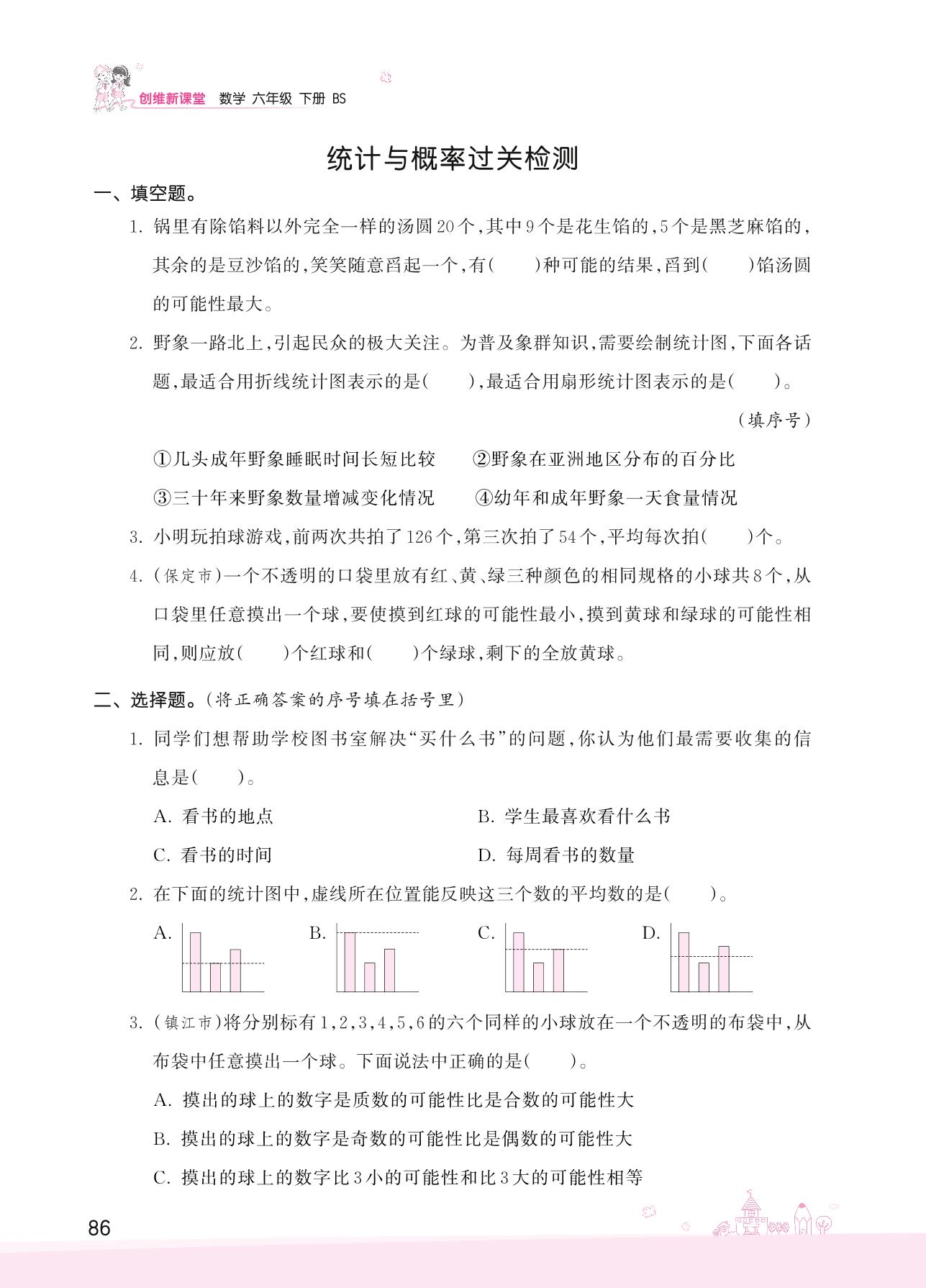 2022下册六年级数学北师版 总复习 统计与概率——统计与概率过关检测