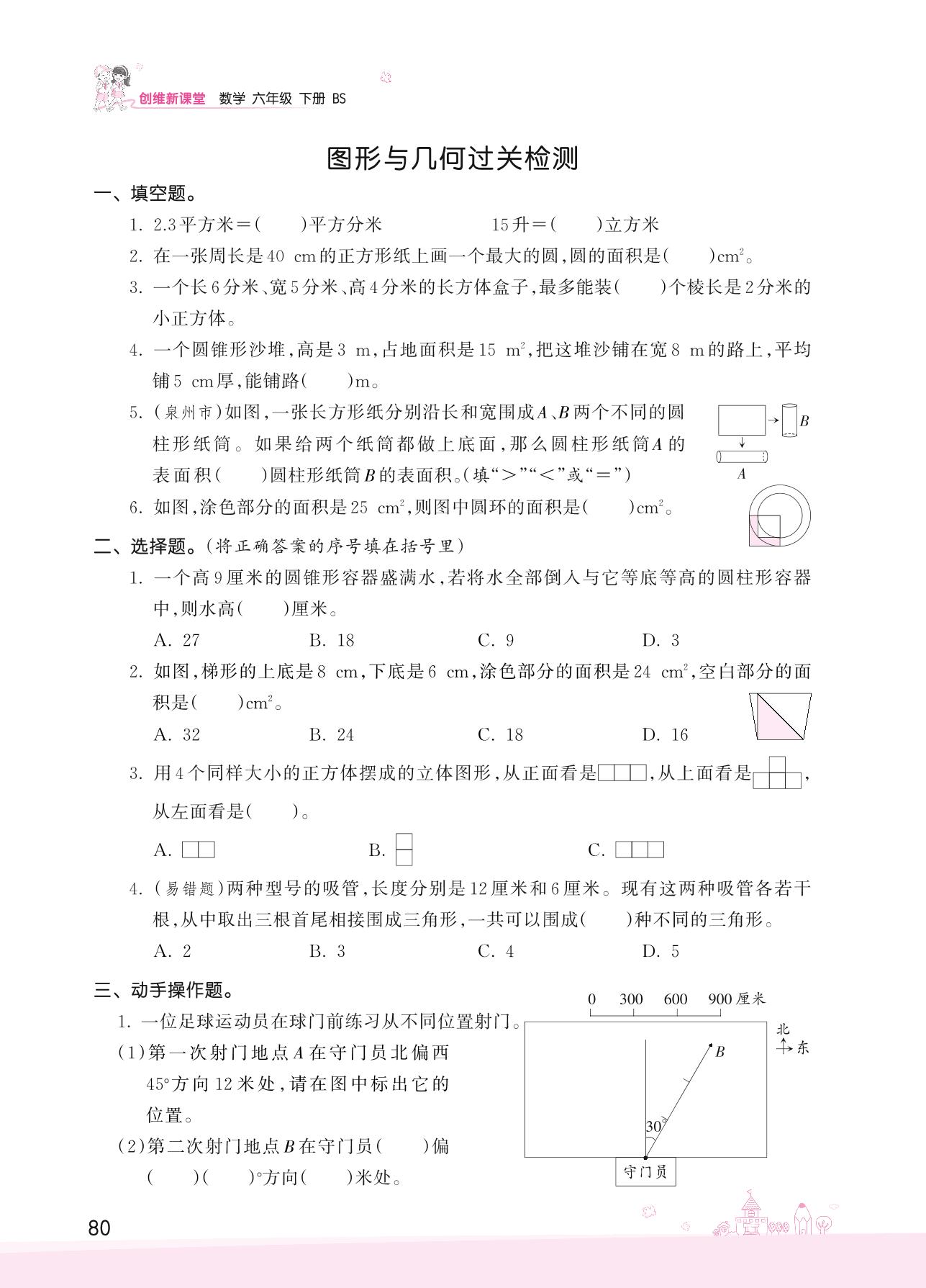 2022下册六年级数学北师版 总复习 图形与几何——图形与几何过关检测