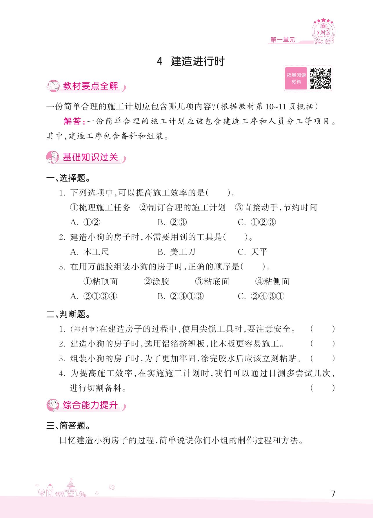 2022下册三年级科学大象版 第一单元 小小建筑师——4 建造进行时