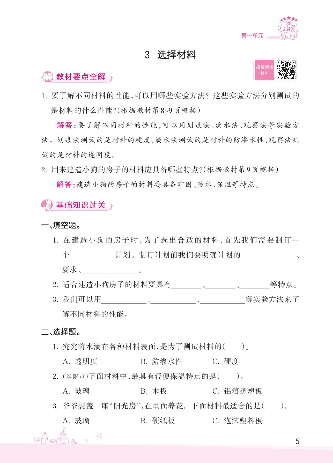 2022下册三年级科学大象版 第一单元 小小建筑师——3 选择材料