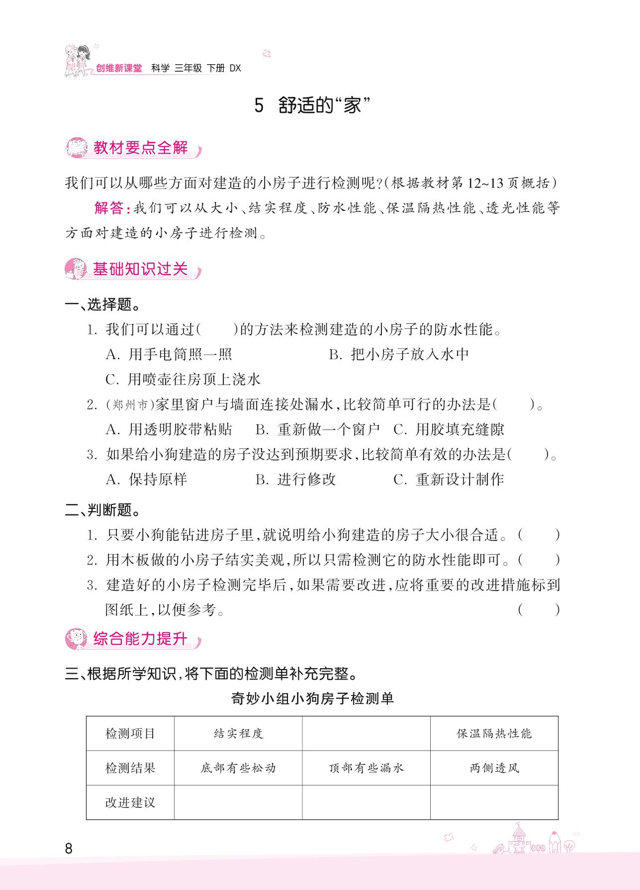 2022下册三年级科学大象版 第一单元 小小建筑师——5 舒适的“家”