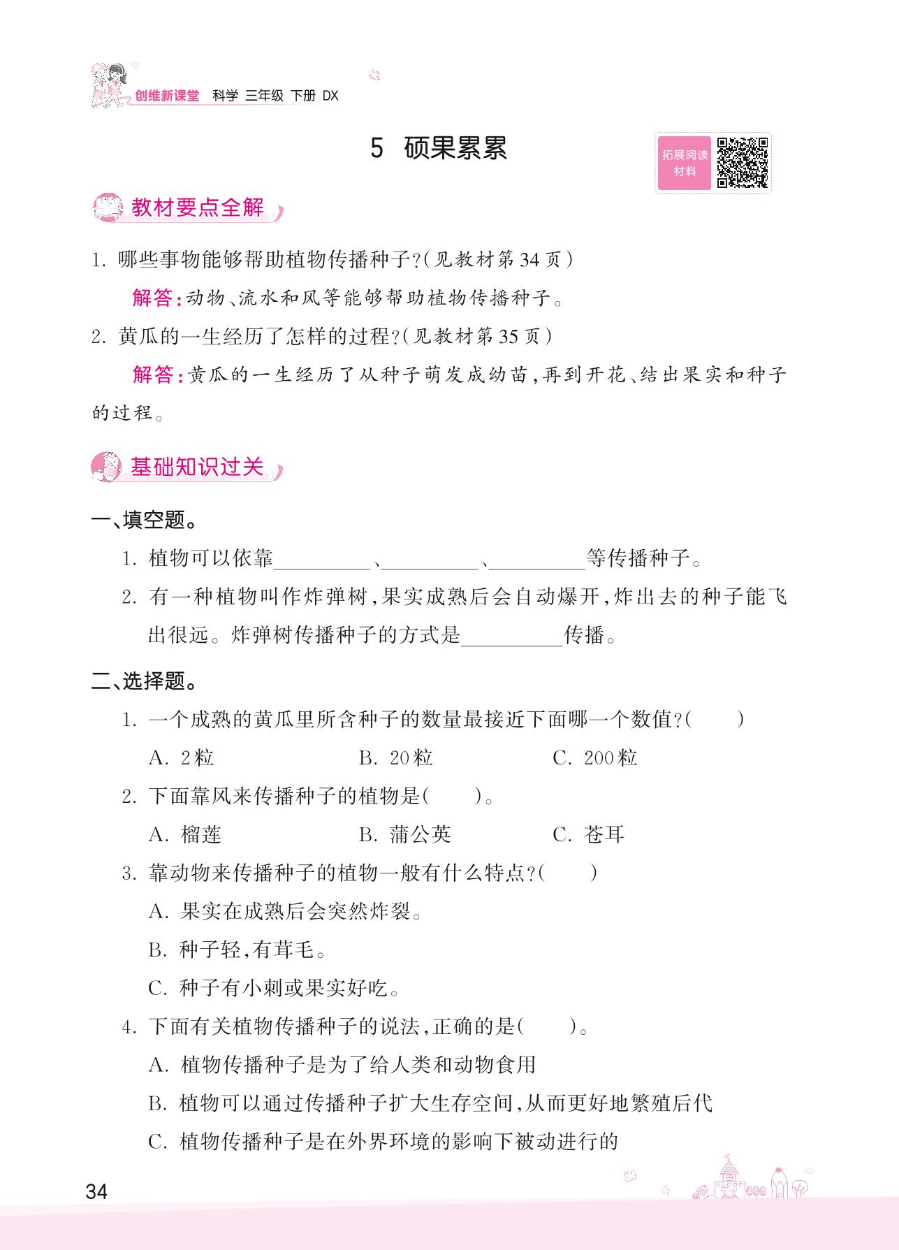 2022下册三年级科学大象版 第三单元 植物的一生——5 硕果累累