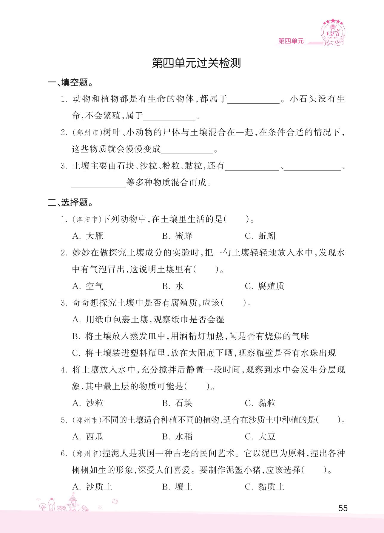 2022下册三年级科学大象版 第四单元 土壤,生命的家园——第四单元过关检测
