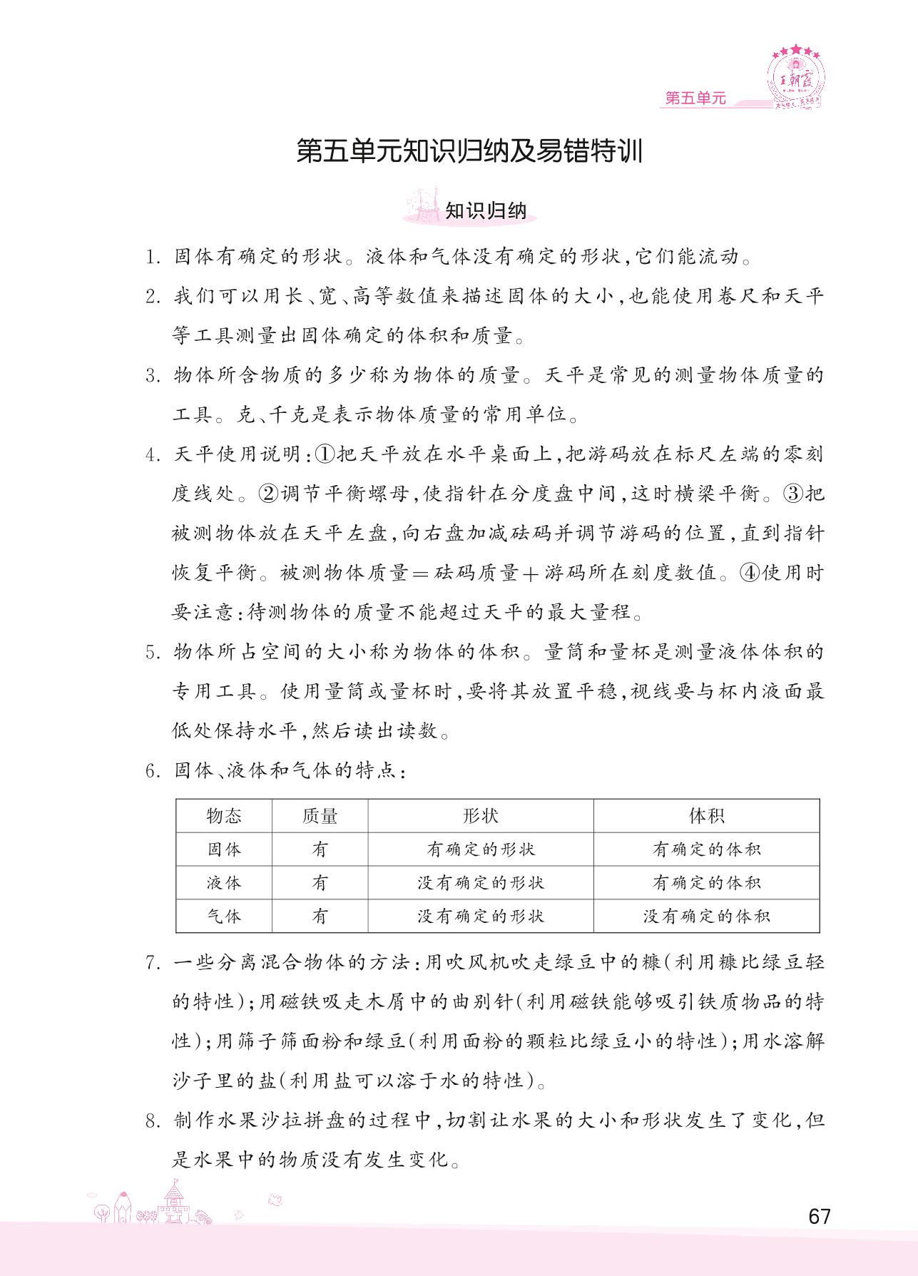 2022下册三年级科学大象版 第五单元知识归纳及易错特训