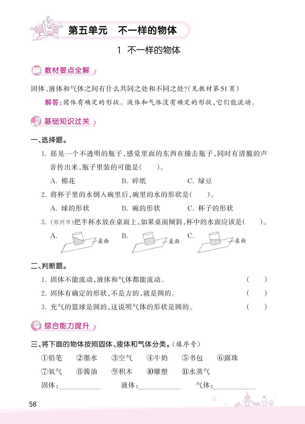 2022下册三年级科学大象版 第五单元 不一样的物体——1 不一样的物体