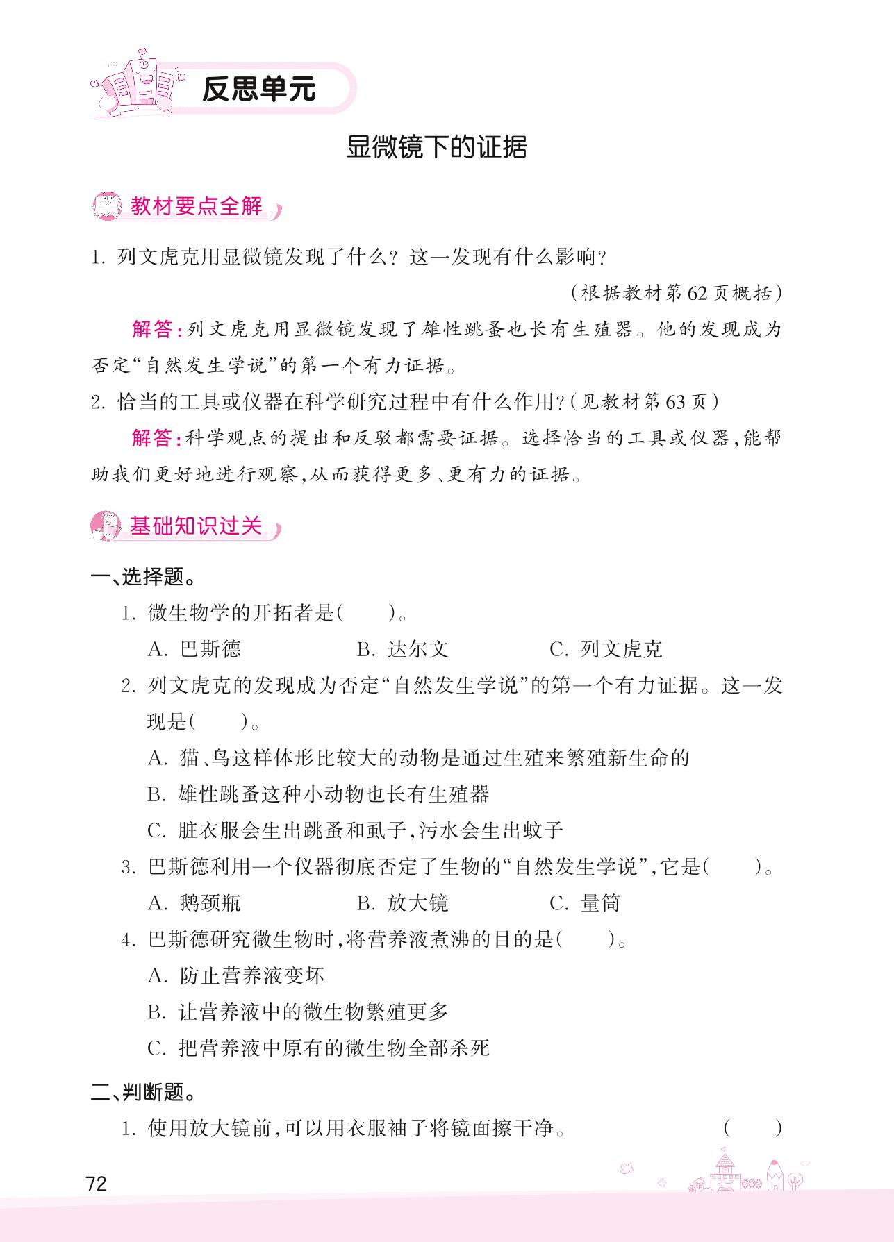 2022下册三年级科学大象版 反思单元——显微镜下的证据