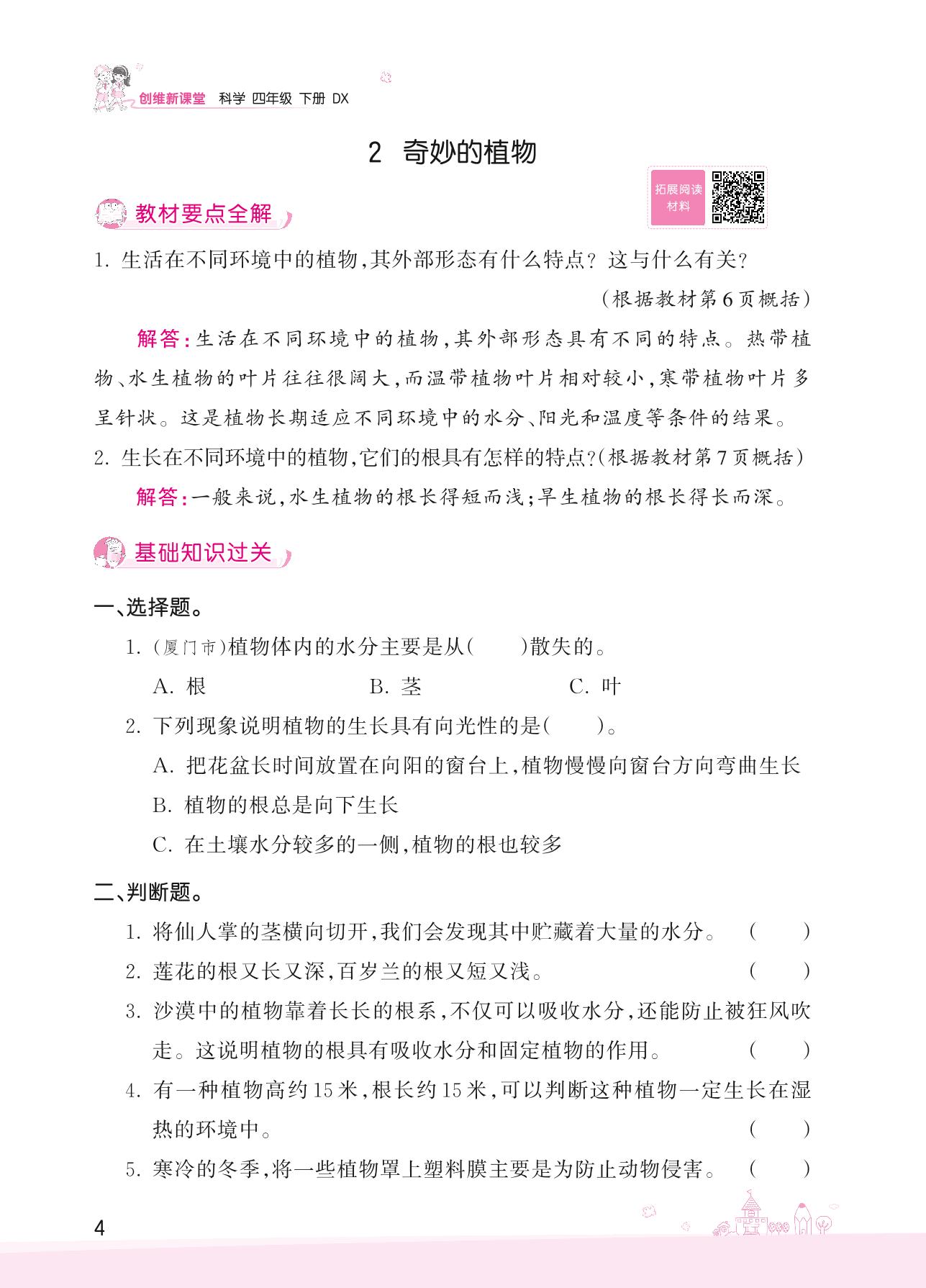 2022下册四年级科学大象版 第一单元 生命世界——2 奇妙的植物