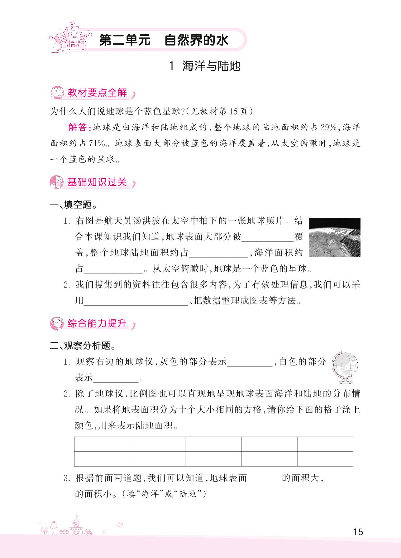 2022下册四年级科学大象版 第二单元 自然界的水——1 海洋与陆地