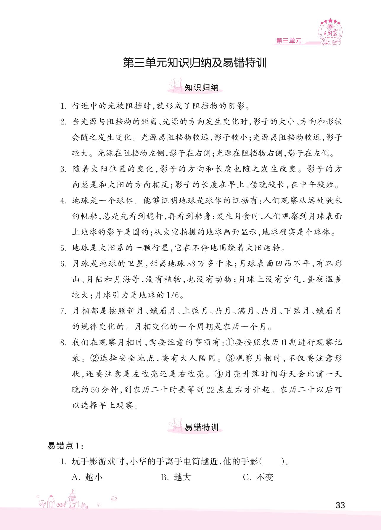 2022下册四年级科学大象版 第三单元知识归纳及易错特训