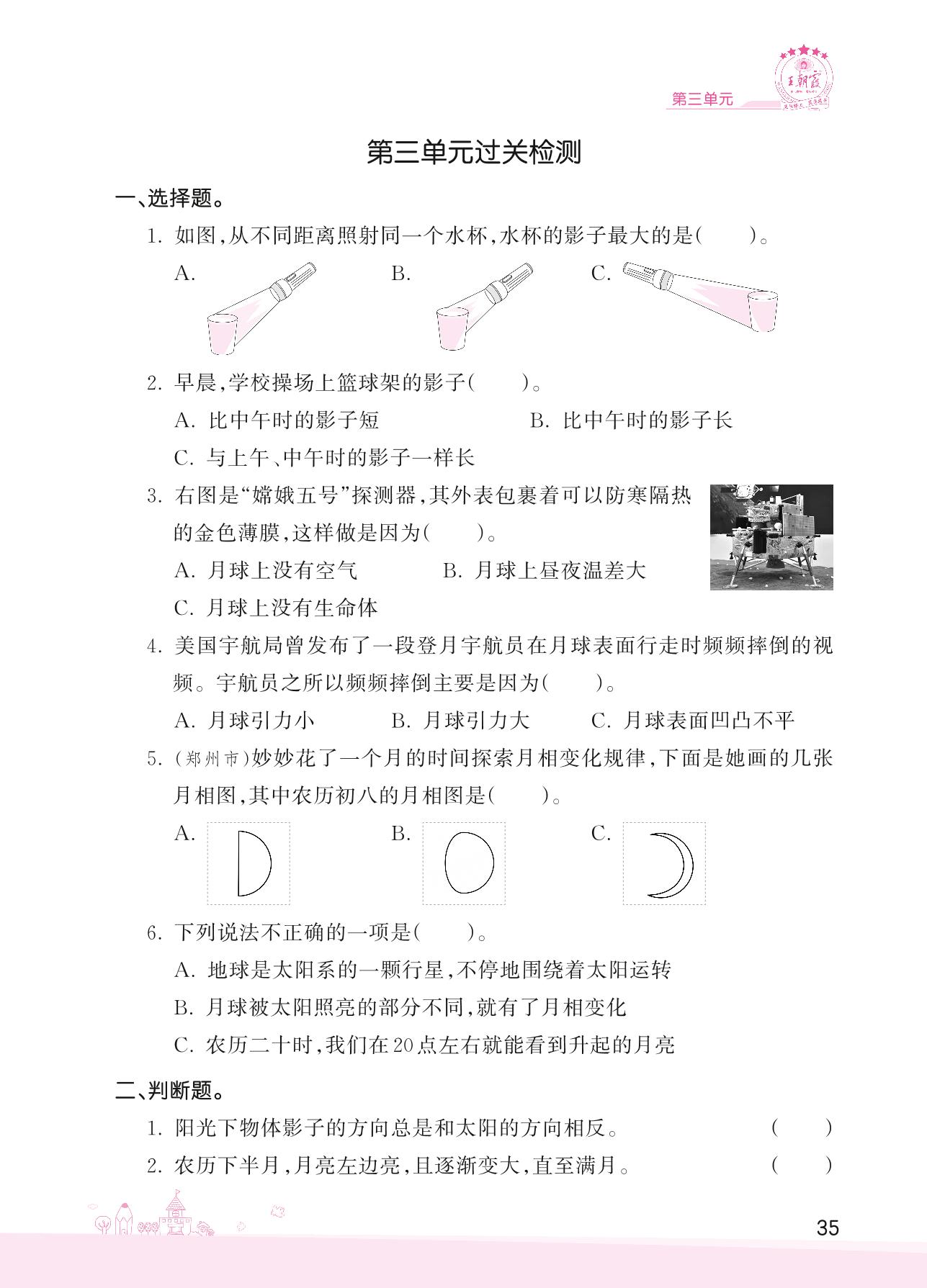 2022下册四年级科学大象版 第三单元 太阳、地球和月球——第三单元过关检测