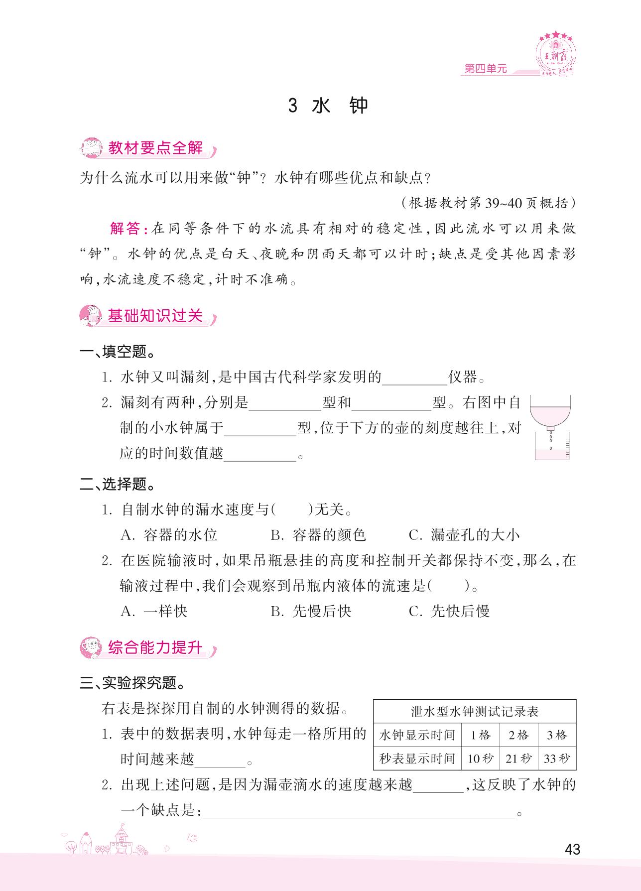 2022下册四年级科学大象版 第四单元 精确时间的步伐——3 水钟