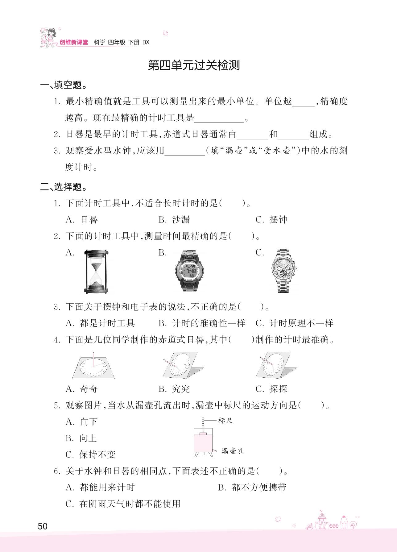 2022下册四年级科学大象版 第四单元 精确时间的步伐——第四单元过关检测