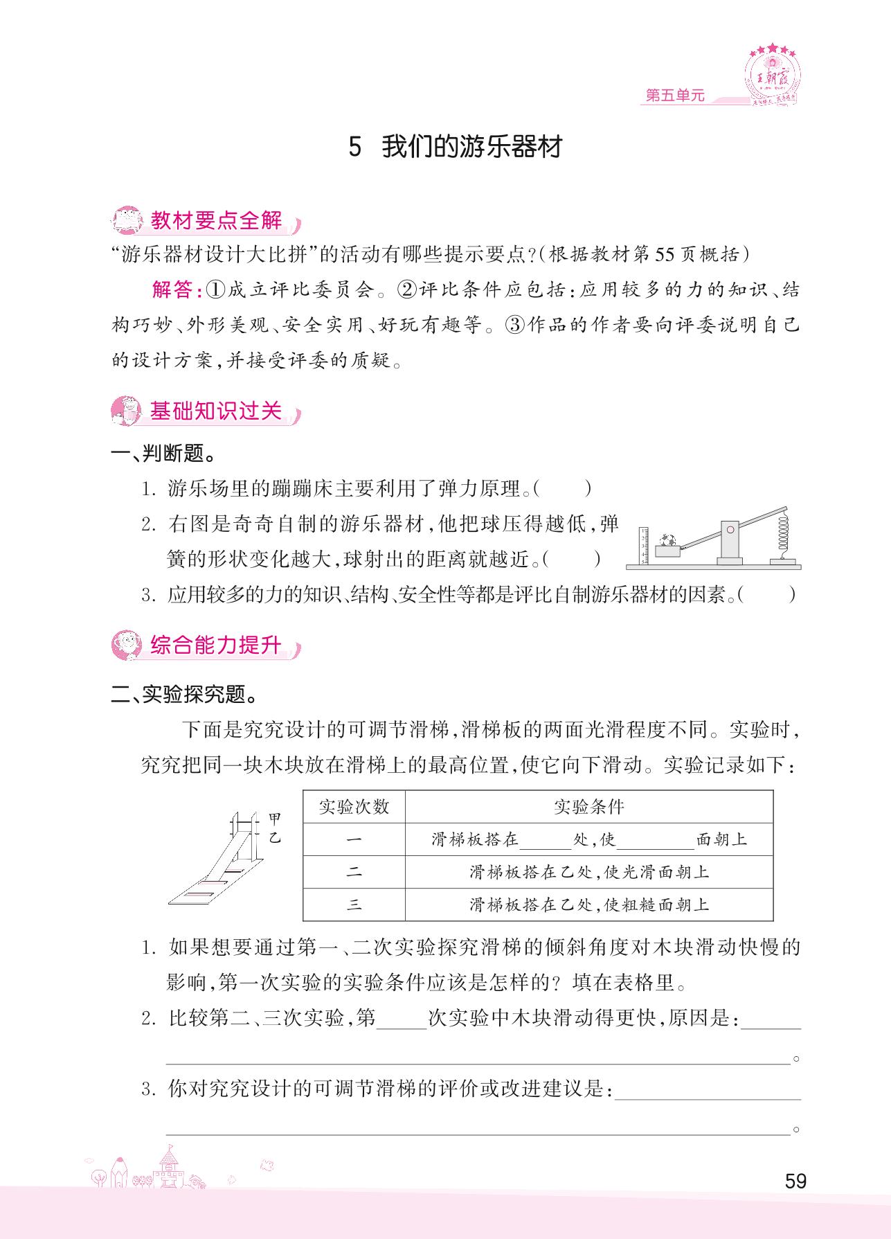 2022下册四年级科学大象版 第五单元 开心游乐场——5 我们的游乐器材
