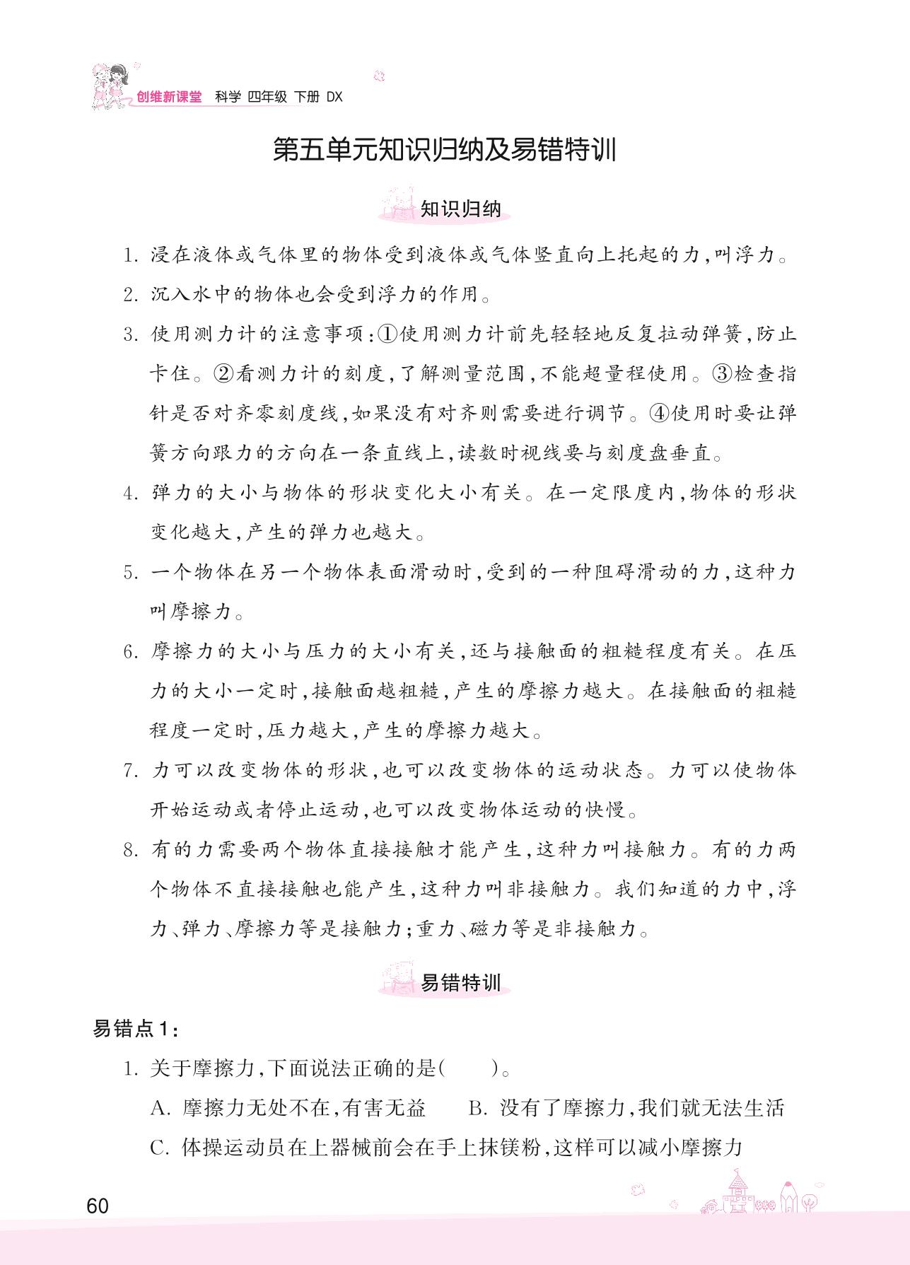 2022下册四年级科学大象版 第五单元知识归纳及易错特训