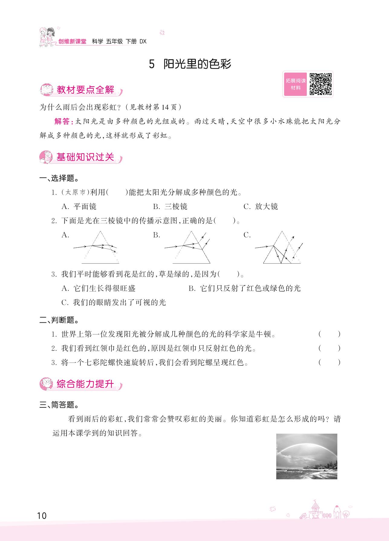 2022下册五年级科学大象版 第一单元 探寻光的路线——5 阳光里的色彩