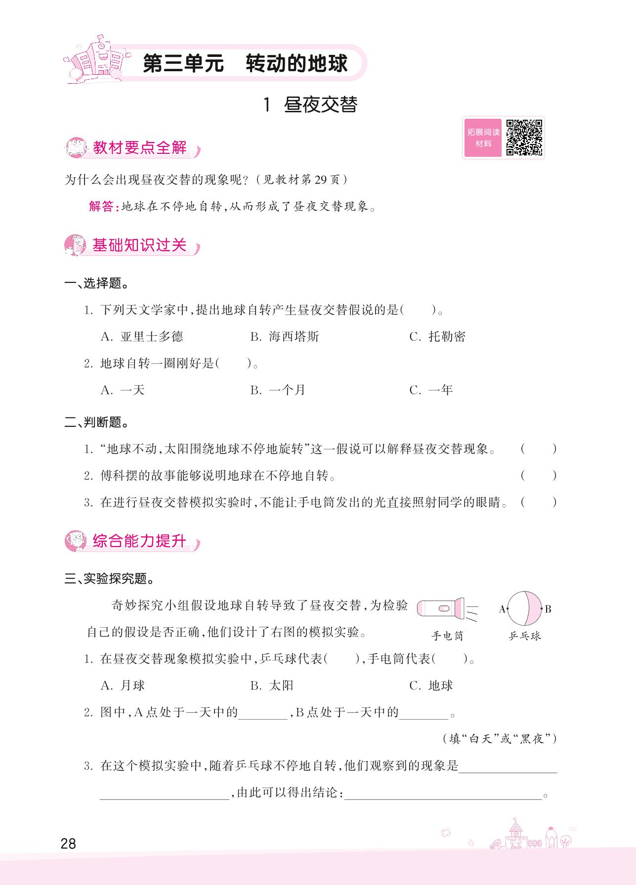 2022下册五年级科学大象版 第三单元 转动的地球——1 昼夜交替
