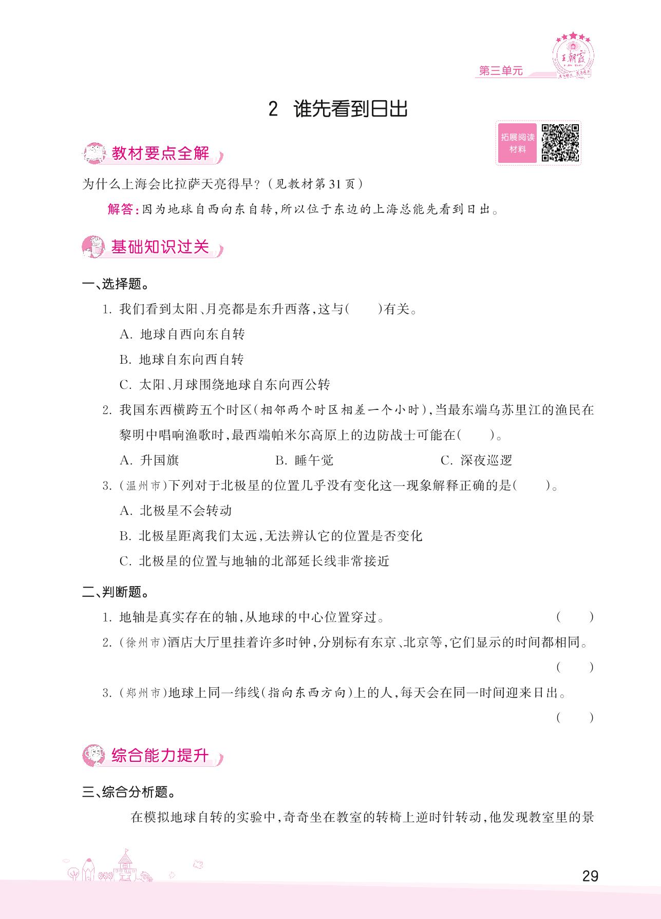 2022下册五年级科学大象版 第三单元 转动的地球——2 谁先看到日出