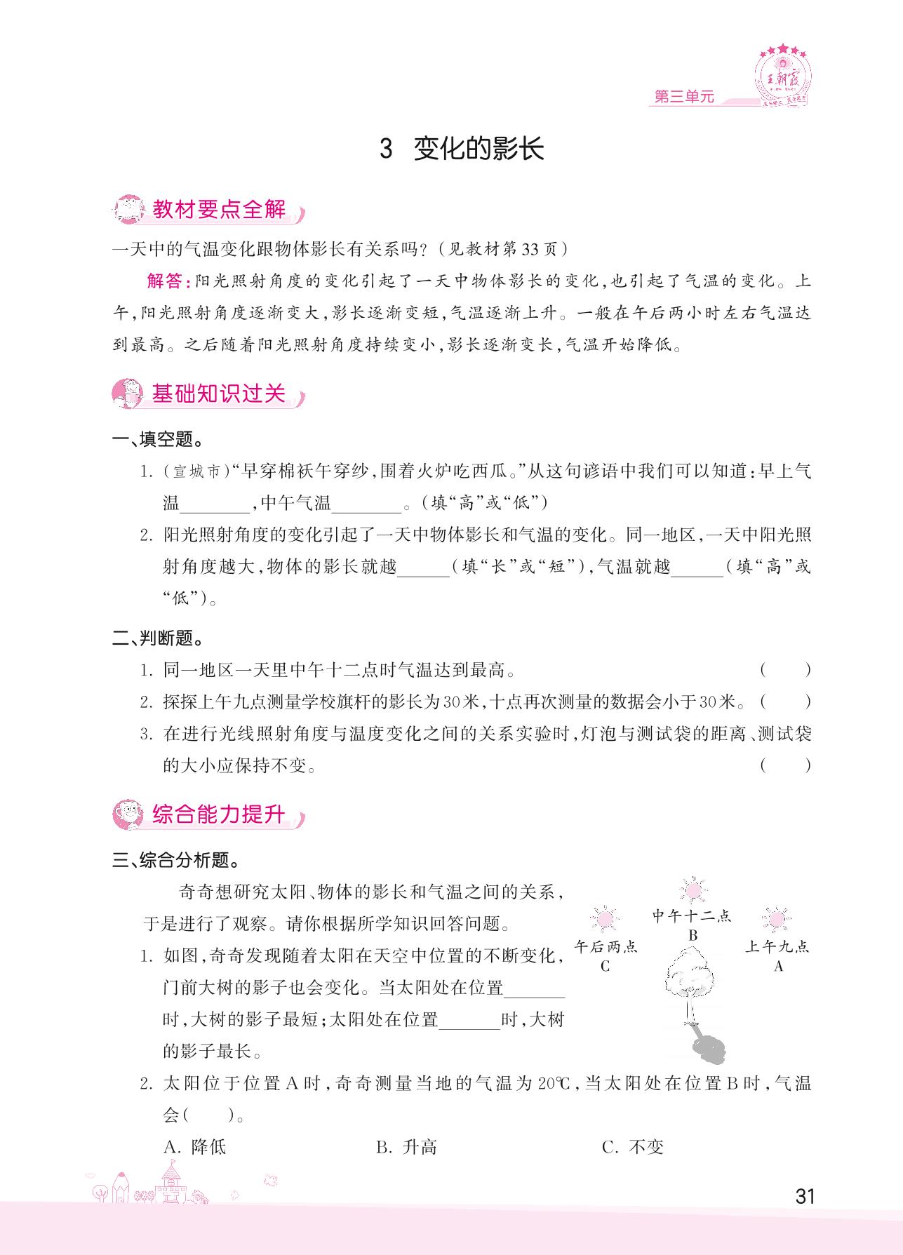 2022下册五年级科学大象版 第三单元 转动的地球——3 变化的影长