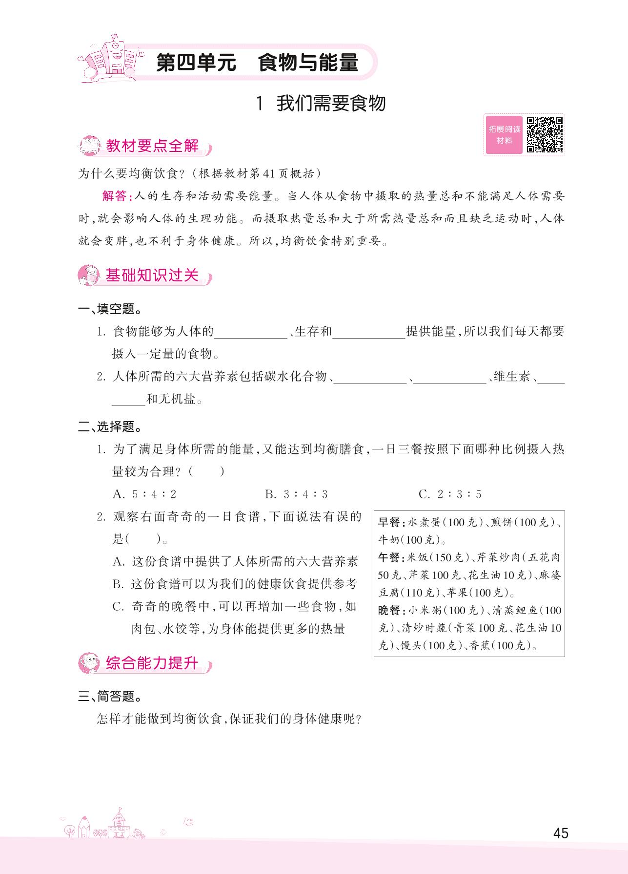 2022下册五年级科学大象版 第四单元 食物与能量——1 我们需要食物