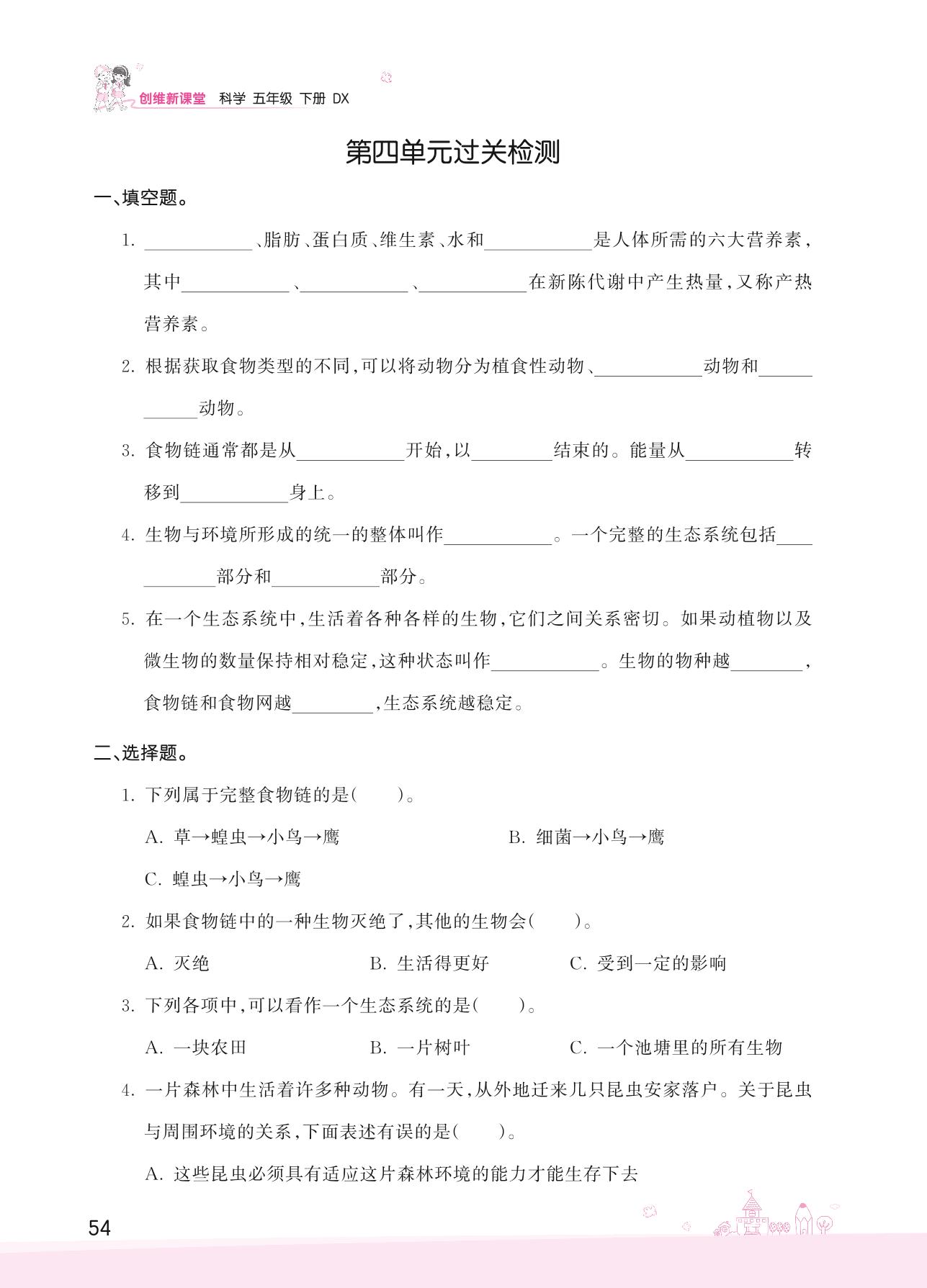 2022下册五年级科学大象版 第四单元 食物与能量——第四单元过关检测