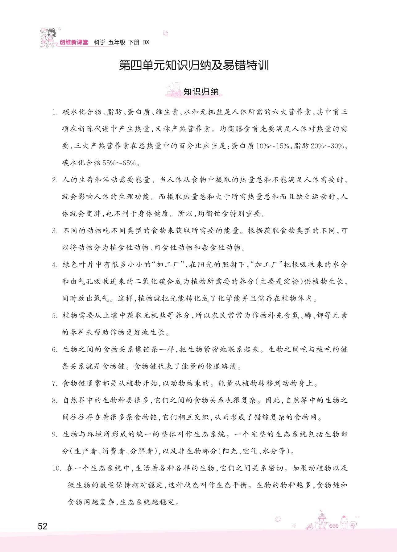 2022下册五年级科学大象版 第四单元知识归纳及易错特训