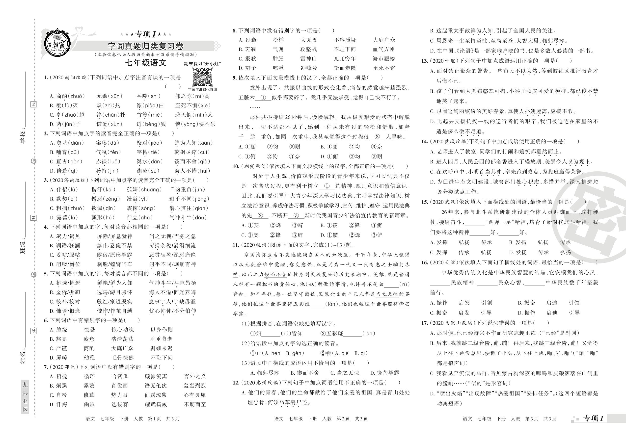王朝霞期末专项卷七年级下册语文(人教版)_R210801235442【0】