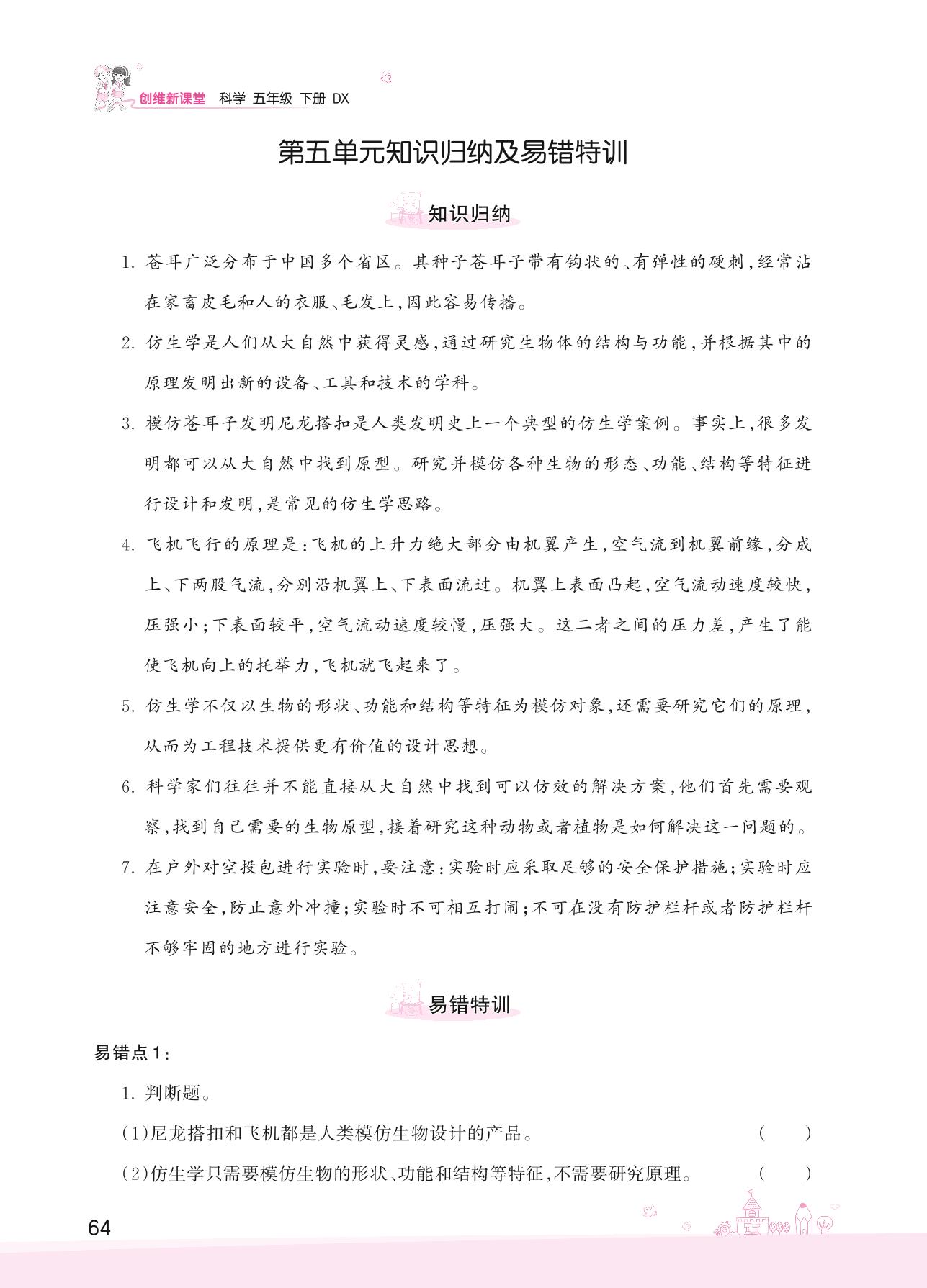 2022下册五年级科学大象版 第五单元知识归纳及易错特训