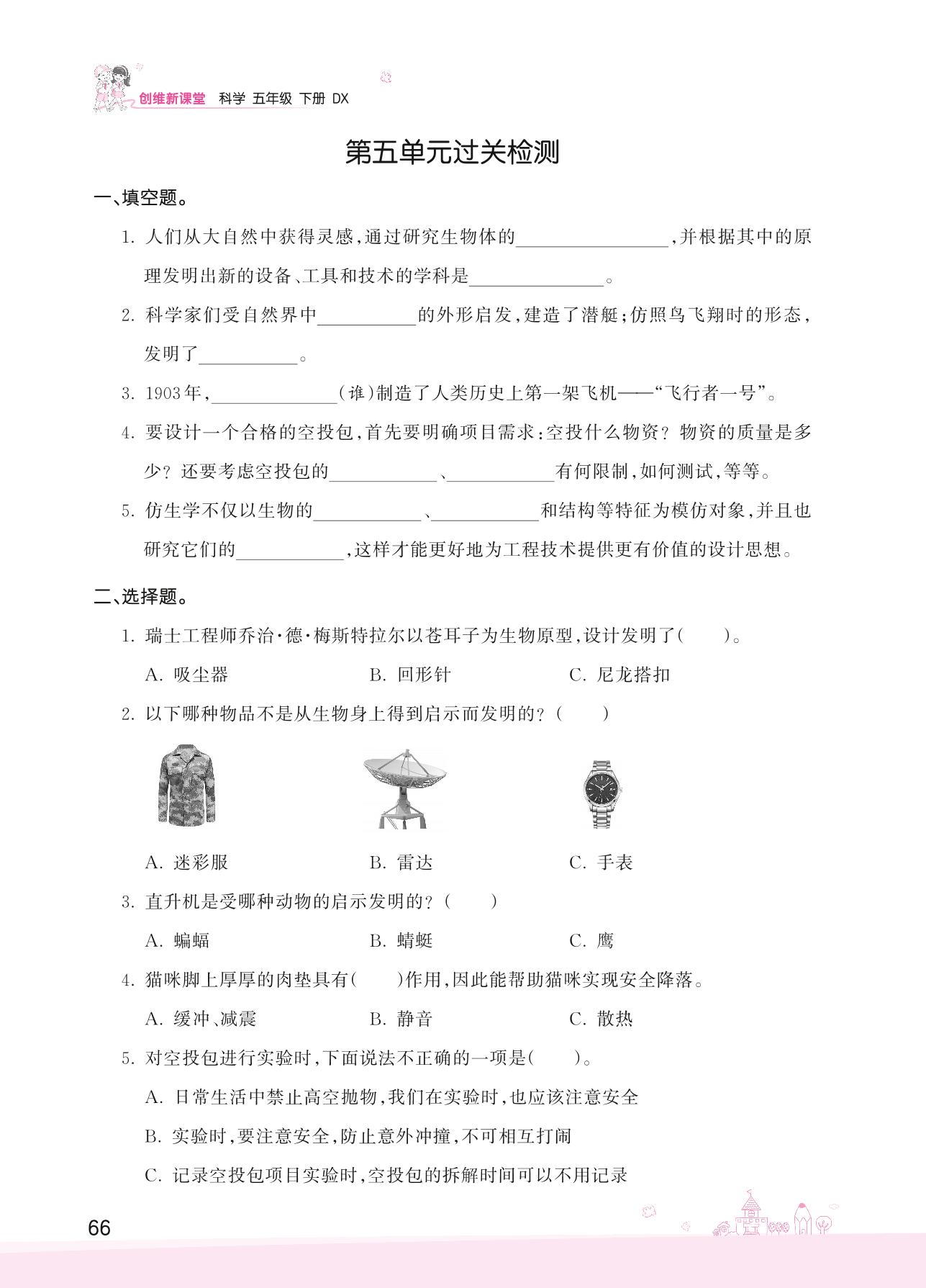2022下册五年级科学大象版 第五单元 大自然里的老师——第五单元过关检测