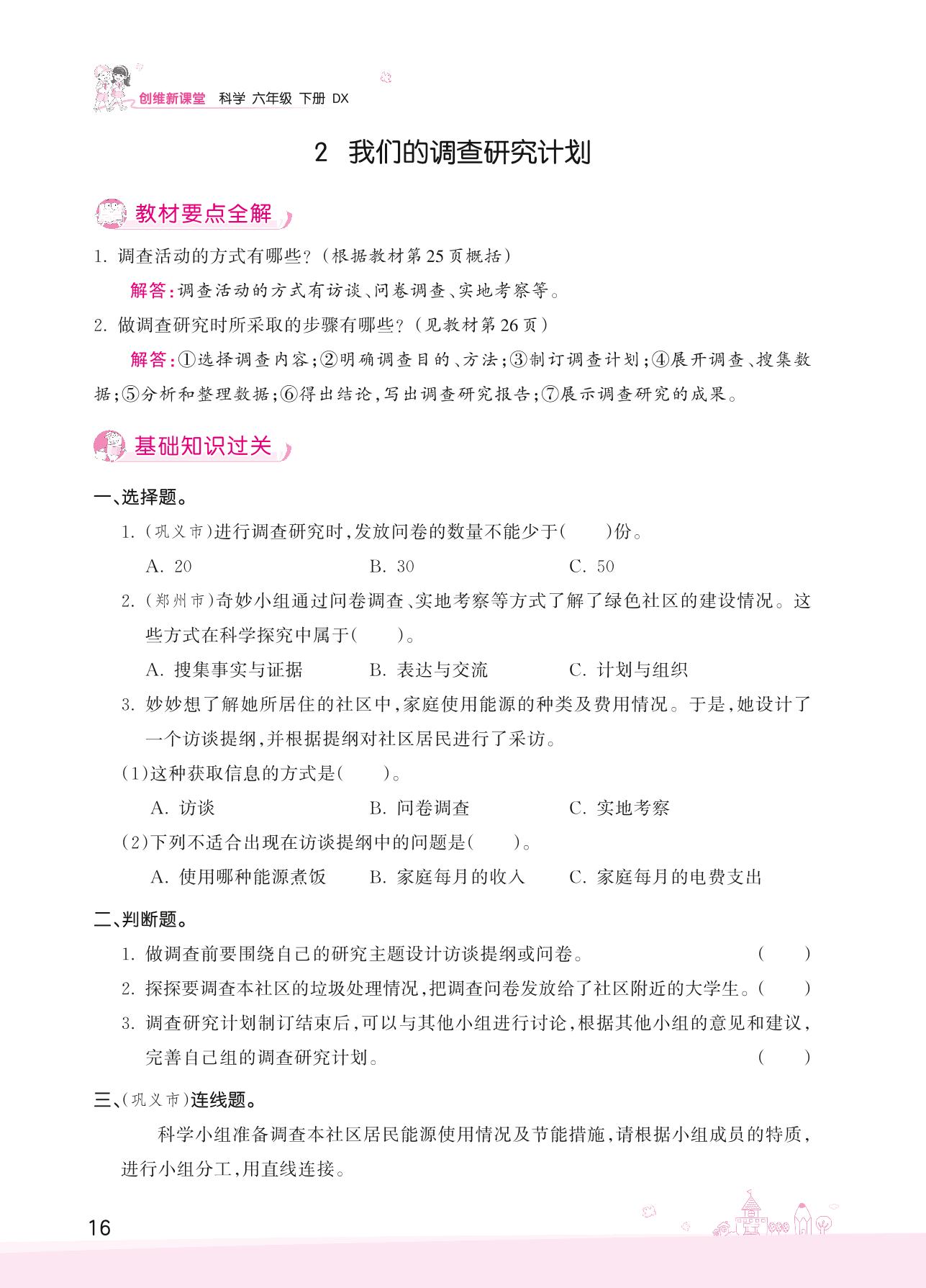 2022下册六年级科学大象版 第二单元 绿色社区调查——2 我们的调查研究计划