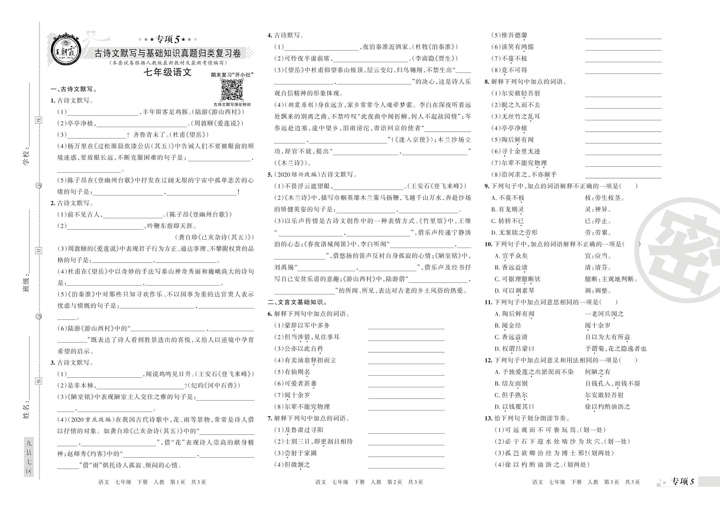 王朝霞期末专项卷七年级下册语文(人教版)_R210801235504【0】