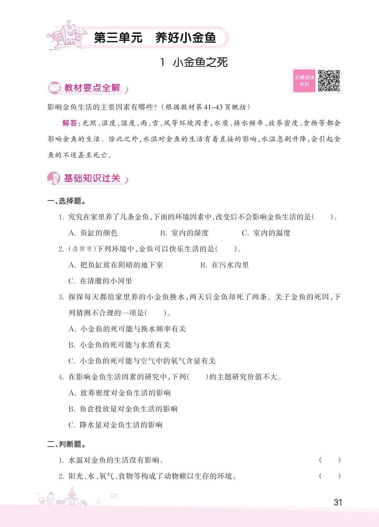 2022下册六年级科学大象版 第三单元 养好小金鱼——1 小金鱼之死